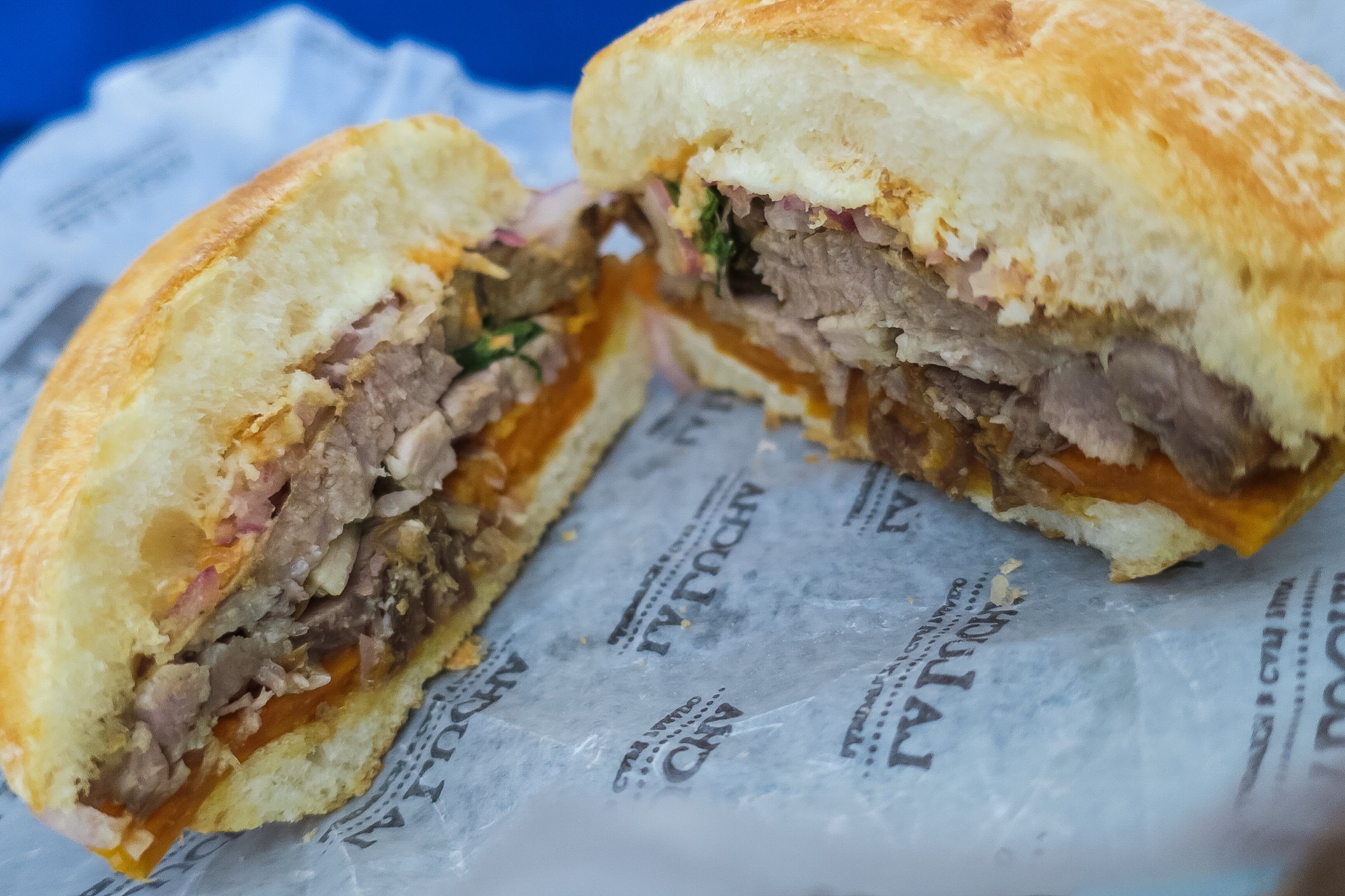 When deciding what to have for dinner, we kept seeing a place called Manolo pop up from fellow travelers, A churro (Spanish/Latin fried dough) shop. Done and done! We read about how amazing the churros were there and decided it didn’t matter what they had for dinner but that we’d go if even just for those. When we got there we saw that they were also known for their sandwiches. We sat outside in front of the case displaying the churros (why we are the two Fat Americans) Dean got the Manolo, their signature huge sandwich stuffed with ham, cheese, pickles, chicken, bacon, roasted red peppers, lettuce and tomato. I got chicken and cheese (I know, I know, I let him have all the fun! If we call it Pollo y Queso does it sound more exotic?). Then it was time for the churros. So good!! We got one of each flavor, dulce de leche, vanilla and chocolate. They were completely stuffed with the filling so when you bite into them it all spews out from unexpected places. Hands down we both called the win for Dulce de Leche, the others were good, but sweet, salty crispy and molten churros can’t be wrong!