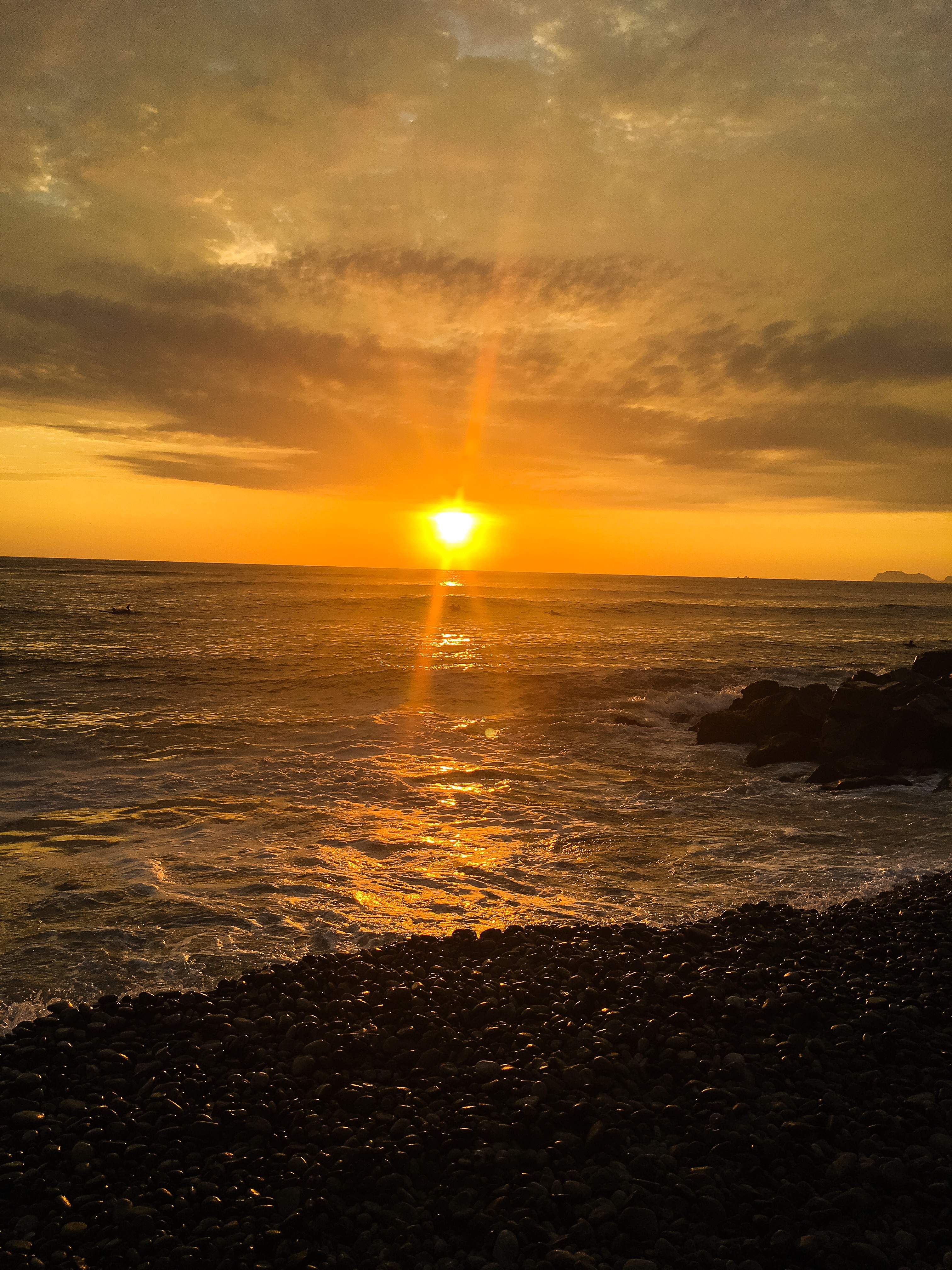 We got in Saturday night with only enough time to check into our hotel, run to the beach to watch the sunset and grab dinner. The sunset was amazing. We got a seat on a seawall with locals and tourists alike that were there for the same reason. The waves were vigorous and made for some gorgeous photos. It was the perfect welcome to Peru. For dinner, we landed at Pardos, a chicken shop that was known for its Pollo a la Brasa which is essentially rotisserie chicken with spices, we think it’s the same as going to Applebee’s in America for a burger. Of course we also had to get Peru’s famous Pisco Sour and Chica Morada (purple corn juice, it’s actually really good!). The chicken was was juicy and the skin was crispy and flavorful. It came with French fries, salad, and Aji, a yellow chili pepper sauce that’s just spicy enough, which of course we both loved. Dean also tried Anticuchos de Corazon which are grilled beef hearts. He said it tasted like super concentrated beef and would definitely get it again.  Four foodie Peruvian Bucket list items down!  We figured we’d call it an early night since we only had one day to pack it all in.