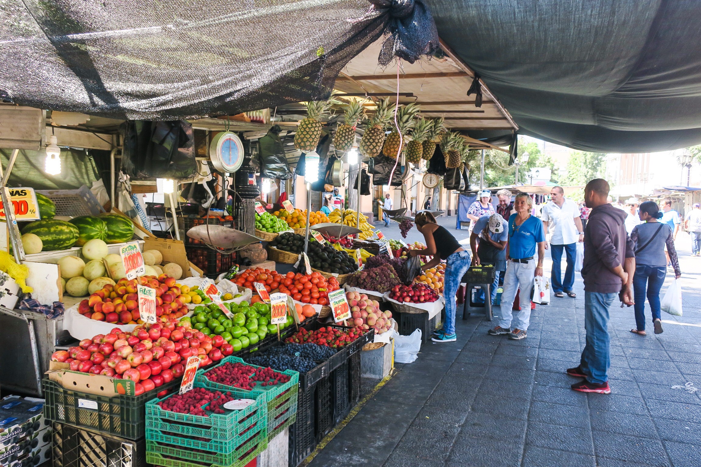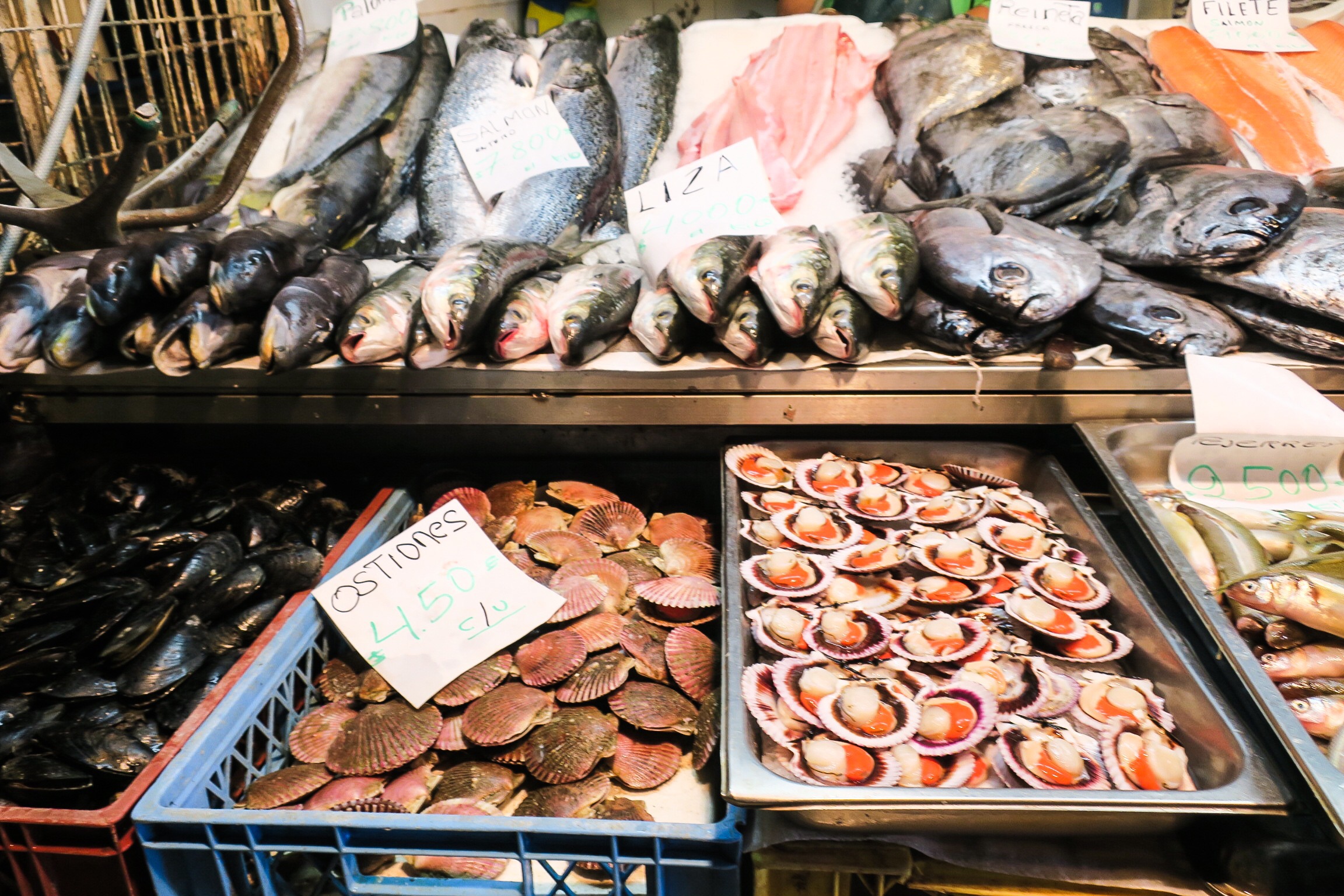 Our first day in Chile we spent in Santiago. We stayed in an Airbnb so it was nice to have a full refrigerator to stock with water and Lemon Beers (even though we didnt need it, their water is safe to drink here!), a walkout balcony,  and a nice washer for our stinky clothes. We first went to find breakfast and realized, yet again, it’s Sunday! Not many places to choose from! We landed on a little coffee shop and each got an empanada. Mine was stuffed with melty cheese and Dean’s was stuffed with tender meat and crunchy pine nuts. It also had an Aji pepper sauce to give it an extra kick. They warned it was muy picante, But we think Tabasco sauce is twice as hot. We were then off to the Mercado Central (central market) to see what it was all about. Upon entering, we quickly noticed that this market primarily sold fish. Bad luck for us, since I’m such a picky eater and don’t like fish and Dean is allergic! However, it was cool to walk through and see it all, the restaurants in the center and citizens buying their fresh fish along the perimeter. The scallops were cracked open and smelled of salt water, probably some of the freshest seafood we’ve seen yet. Outside the market, the streets are lined with the brightest color fruits and freshest looking vegetables, it’s the middle of summer so the produce was the perfectly ripe, you can imagine the air was perfumed with the scents of peaches, watermelons, strawberries and raspberries. Bunches of plump juicy grapes were proudly set out on display waiting for the lucky buyer to take them home. Another cue that you’re in a major city, a vast walking mall housed many stores, restaurants and people selling, yet again, everything you can imagine from produce, to shoes and clothes, along with all different kinds of street food. They had things like Mote con huesillos, cooked wheat kernels, with dried peaches that are rehydrated in a sugar water, then put in a cup. It looked so delicious!