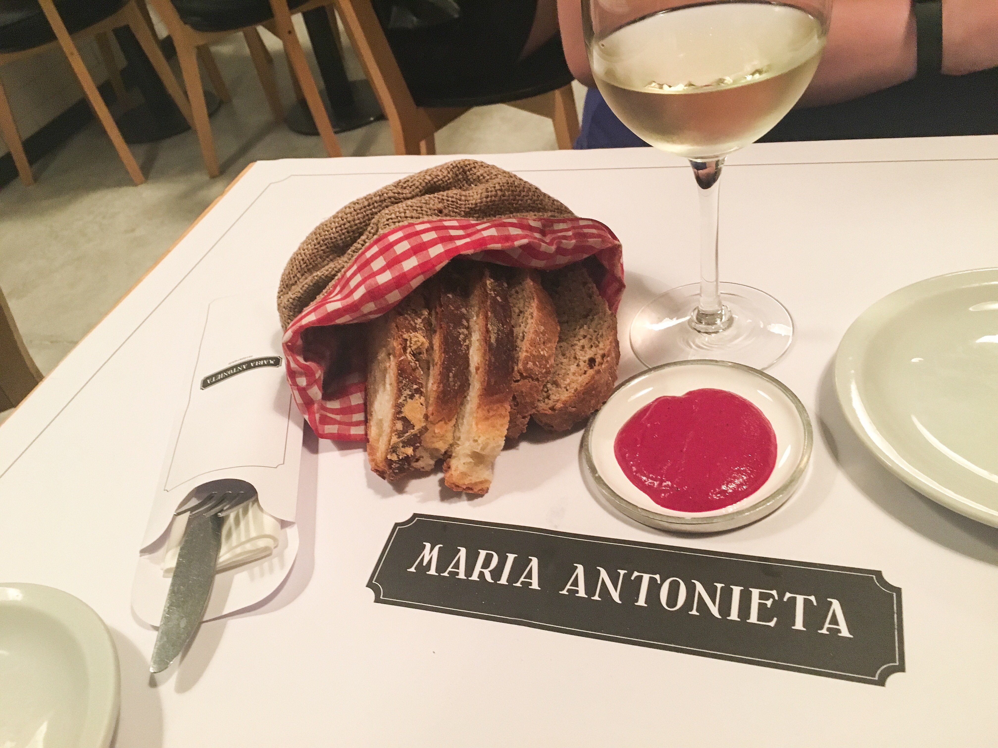 Maria Antoinette: This was our first meal in Mendoza and set the bar very high! We absolutely loved every bite. Dean got a Quilmes beer (Argentinian Lager) and I got a glass of Torrontes (native White Grape). They brought over bread and some sort of beet purée, that got gobbled up very quickly, the purée was outstanding! For an appetizer, we got Tomato Florentina, close to a caprese salad but they used Burrata Cheese instead of mozzarella. If you’ve never had Burrata.. stop reading right now and find some! It’s fresh mozzarella stuffed with a mix of cream and Stracciatella cheese. A structured exterior holds a creamy, soft and subtley salty center. It’ll change your life. We promise. The heirloom tomatoes were some of the best Dean has ever had, such a deep red color and the texture was incredibly meaty, accented with fresh basil leaves and a drizzle of Argentinian Extra Virgin Olive Oil. Each bite produced more stars in his eyes and smiles on his face. For entrees, Dean got an Argentinian Beef Ribeye steak with a side of roasted vegetables, served on a large wooden cutting board. The presentation was epic, the other tables leaned over for a peek at what he had ordered. It’s like when a plate of sizzling fajitas goes by you at a chain restaurant, people get envious!  I got the pumpkin and marscapone agnolotti, which is similar to a ravioli. The pasta was perfectly al dente and the inside bursted with the perfect mix between savory and sweet and was so creamy it basically melted in your mouth. For dessert, we shared a warm dulce de leche soufflé with a side of fresh banana ice cream. So rich but oh, so delicious.
