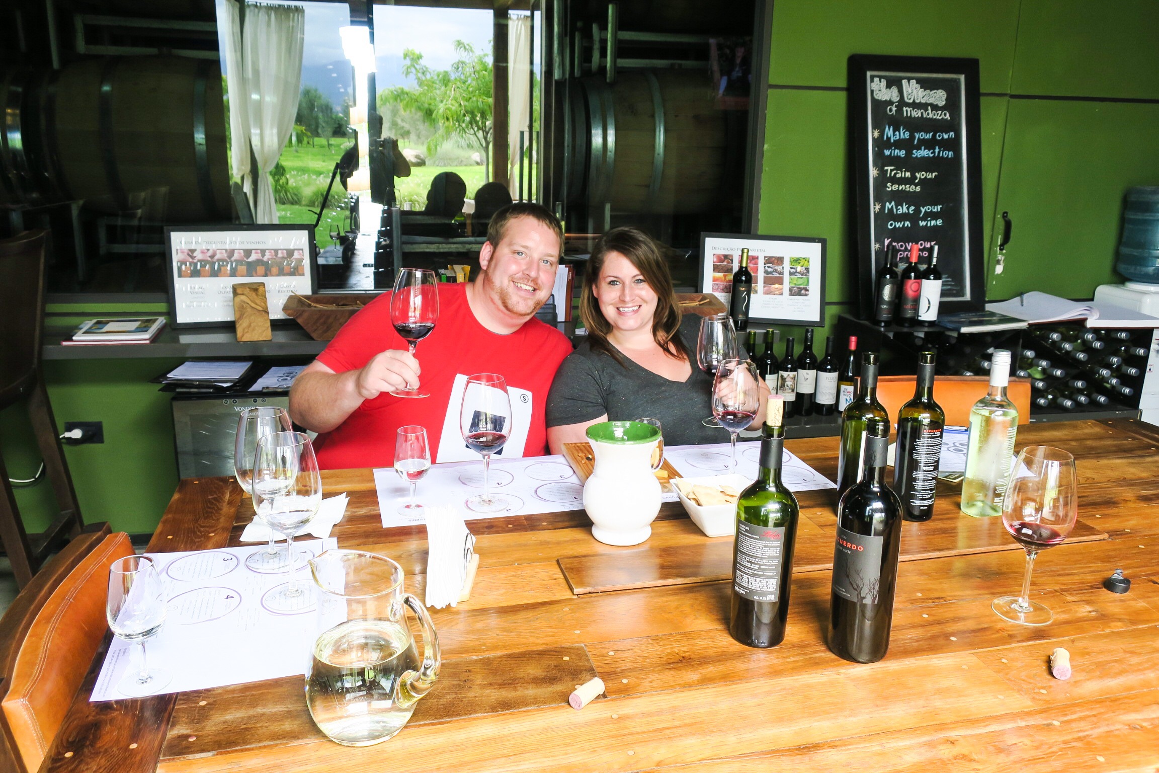 On a different day, we decided to rent a car and drive to wineries ourselves as we thought it would make more sense for us financially. After a chat with our concierge friend, we learned that most wineries are closed on Monday, whoops! Luckily, Dean had emailed a few places prior and we had heard back from one that was open. So we were off to the Uco Valley for a tour of The Vines of Mendoza. An hour an a half, and a lot of wrong turns, we landed right at the vineyard entrance. There were hundreds and hundreds of acres filled with vines. It was a maze trying to get to the bodega. Luckily we met someone along the way that helped us find it. Otherwise I’m positive we’d still be driving around that vineyard. We met Daniel, our tour guide, who told us all about The Vines of Mendoza. It is an extremely interesting concept! Anyone can rent a plot of land and plant their grapes there. They pay The Vines to take care of their crops, harvest, ferment and bottle everything. The owner of the grapes can have as much or as little interaction and involvement as they want. He told us they have a lot of people from the US who come down and buy land to make their wine. They usually come down once a year to help determine what tasting notes and flavor profiles they want. From there you can keep the wine for yourself or sell for profit. We were so fascinated by this concept and are surprised other wine regions don’t have one just like it! (That we know of…) Then, Daniel showed us the crushing area, their fermentation tanks where the owners can pick between Stainless Steel, Cement or French Oak. Then we were taken into the vineyard where we got to sample some grapes still on the vine. The visual and textural difference between the Malbec and Cabernet Sauvignon was striking. Big, fat, thick skinned, dark Malbec grapes hanging low on the vine compared to the slow ripening, smaller, Cabernet grapes. Daniel showed us how to crush and taste a grape to see and taste the difference between the tannins, juice content and sweetness. Finally we had the opportunity to try some of the classic wines and after much conversation with Daniel, he upgraded us and we were able to try some more higher end, Reserva wines. 6 tastes in total for the price of 3, some local cheeses, crackers and guided tour. The cost of your tasting goes towards a credit to buy wine. We thoroughly enjoyed the Torrontes they had, and somehow purchasing a bottle ended up making the tour cheaper.(Tasting costs x2 minus the bottle of wine somehow equaled less than just tasting!) Winning! He also let us know we didn’t need to worry about the police pulling us over for drinking and driving, that the only thing the cops care about is if you have your lights on… we thought this was weird, but didn’t argue! While it still cost less that if we were to take a tour, the car itself cost $60 and included 200km, which we went over so we had to pay $8 extra. Gas is also very expensive here and we had to spend $20 to fill it back up . We only used about a quarter of a tank! So in total we ended up spending $88 for less than a day.