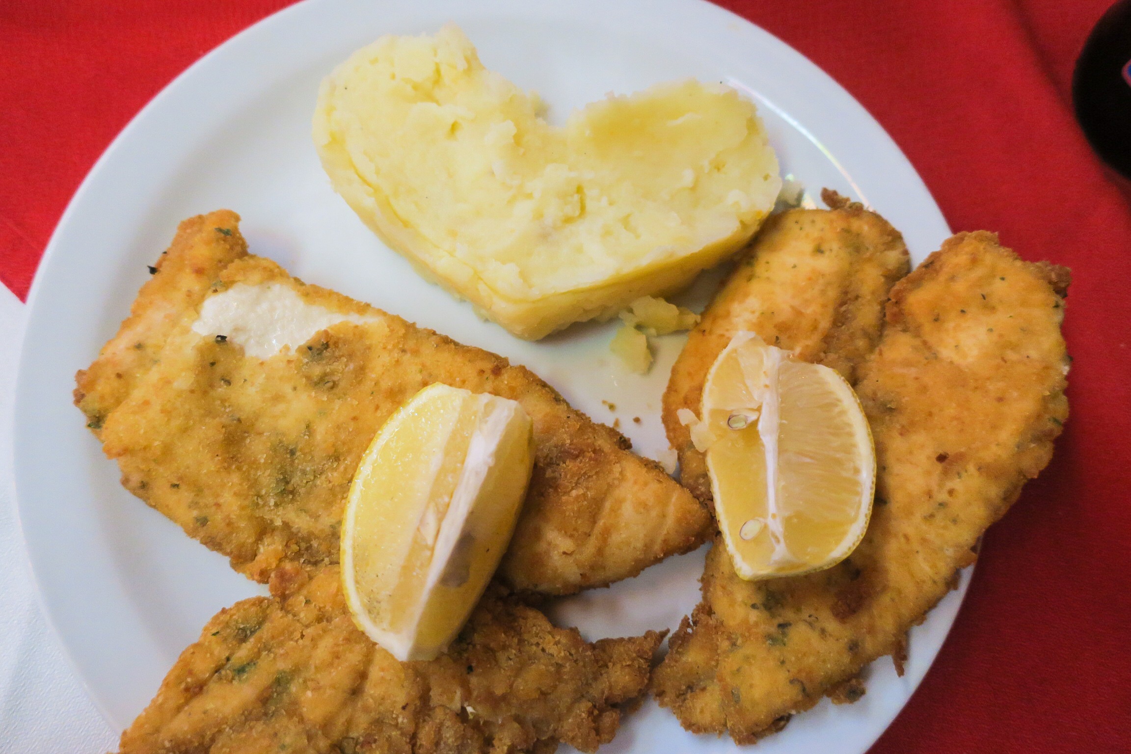 Bull:  A typical Argentinian Parrilla (grill) restaurant right around the corner from our hotel. Dean ordered the Bull Burger and I got chicken Milanese. Deans burger ended up being something more like, some meat on thin, crispy bread vs a nice juicy burger on a big, soft bun, but said it was still pretty good. My chicken was decent and they shaped the mashed potatoes into a heart, just one day early for Valentine’s Day.