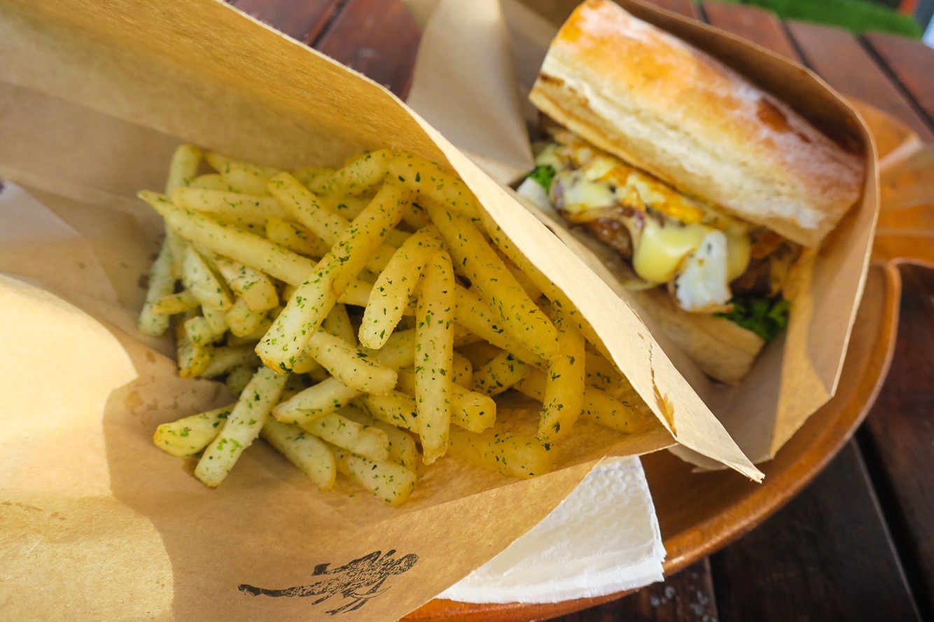 Friday’s are food truck day in Christchurch, so obviously we had to check it out! It seemed to be about half the size of any other food truck park you would see in The States.. but such a great variety of foods! Everything from Indian, Asian and Spanish to American, French and German. They had something for everyone! It was such a hard decision. The nice thing was that the trucks were priced appropriately! Everything was around $10NZ! Usually at food trucks in America, their prices are comparable to a nicer restaurant. At least, that’s how it always seemed to us. We settled on this fun Japanese truck called Lucky Ninja. Dean got their Ninja Burger, a grass fed beef burger topped with fresh salad, crispy fried onions, creamy mashed potato, Japanese mayo, teriyaki sauce and a sunny side up egg all on a freshly baked ciabatta bun. I got the Teriyaki Chicken Donburi, crispy fried chicken coated in sweet and sticky Teriyaki sauce on top of a bed of rice. I added a sunny side up egg to mine and it was absolute heaven. (Check out our instagram to see my slow-mo video of the beautiful egg, I’m so proud of it!) We shared a side of green chips which were French fries with a seaweed dusting on top. It was definitely interesting, but very tasty! It was a great way to end or stay in Christchurch.