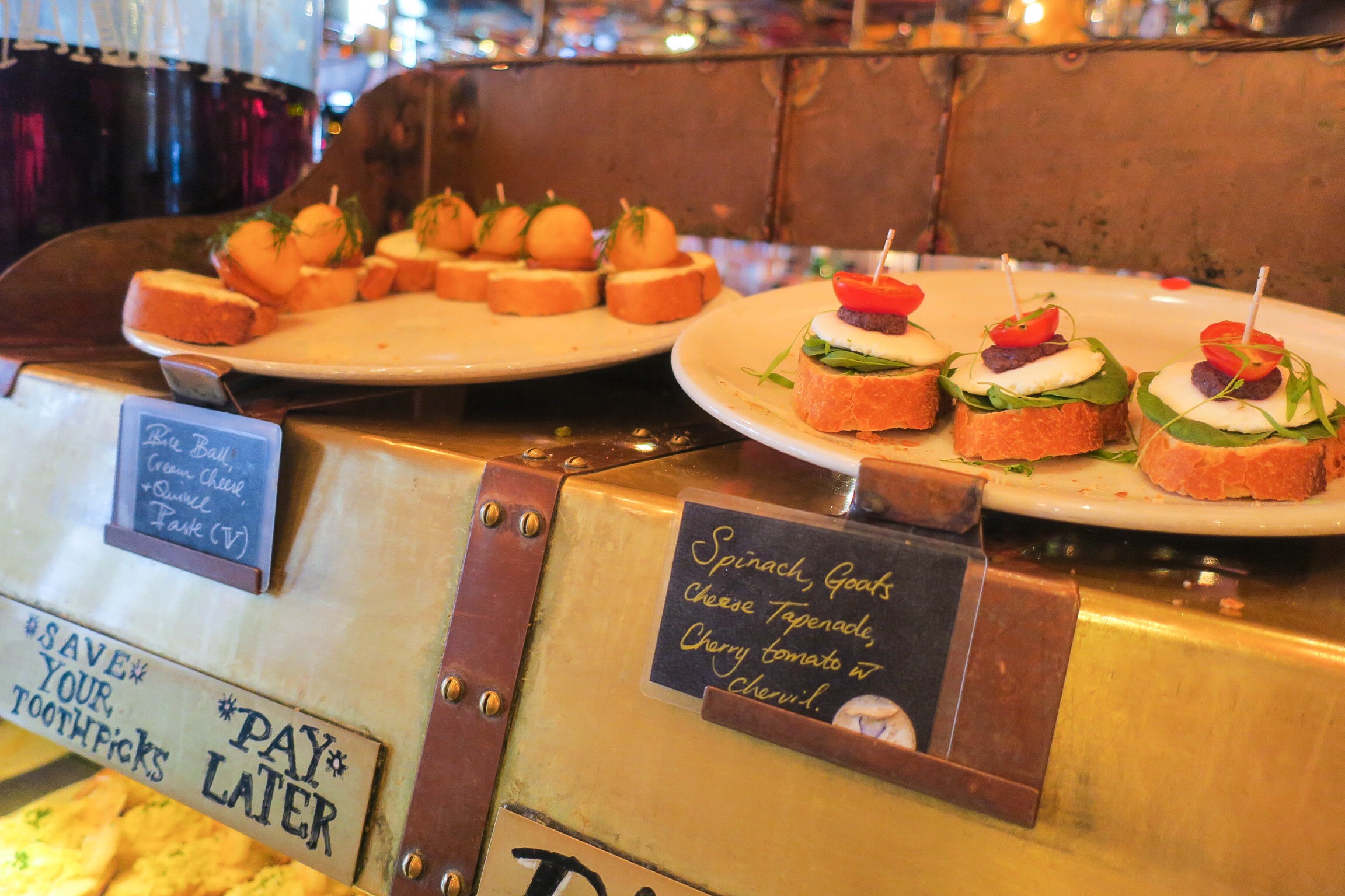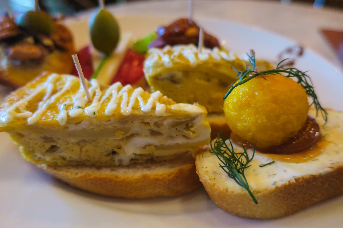 Naked for Satan: Craving something other than Asian food, burgers, sandwiches etc., we yelped around and found Naked for Satan which was an authentic Spanish (Basque) Pinxto’s restaurant and needed to look no further! We fell in love with Pinxtos’s when in Spain, little bite size tapas served on a piece of baguette. They’re served on the bar of the restaurant where you just go up and take whichever you like. Each one has a toothpick stuck in so at the end of your meal, you take it up and pay for however many toothpicks you have. They add up very quickly! From Spanish tortilla (a Spanish potato and egg casserole) to grilled octopus with white bean purée. We also had manchego and red bell pepper, a delicious fried rice ball on top of quince jam and goat cheese and they also had an Australian take – Australian Wagyu beef brasiola. Each one is crafted specifically with flavors that meld together perfectly. It’s always fun to go up to the bar and pick out your favorites and then count the toothpicks at the end.