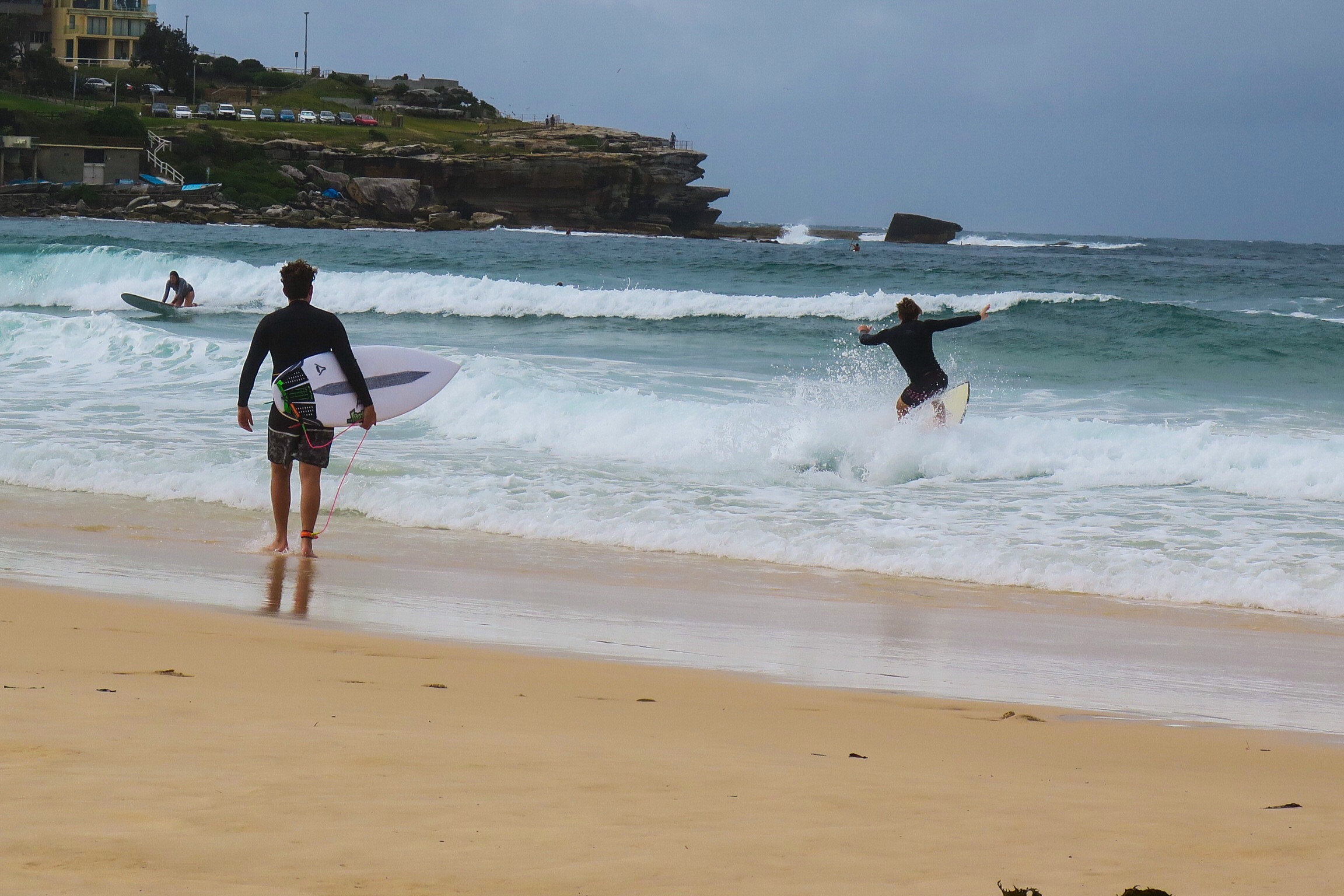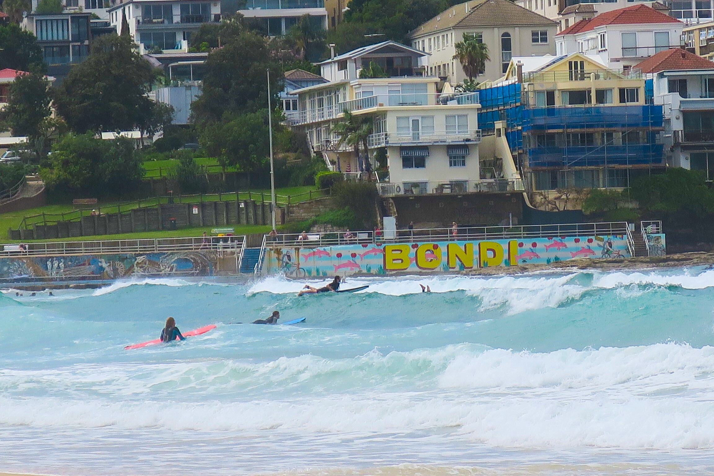 The next and only full day had one mission: Bondi Beach! Even though rain was in the forecast again, Dean was determined to make his way into the ocean. Nothing would stop him. We took the 35 minute bus ride to the beach and by the time we got there, the clouds had parted and the sun was shining bright! Aside from a few drops from the sky, we had a gorgeous sunny day at the beach. The waves were huge and the surfers were everywhere. I wish I had brought my bathing suit! Dean ran into the ocean the minute we got there and played for hours in the waves while I got my feet wet and soaked in the sun.