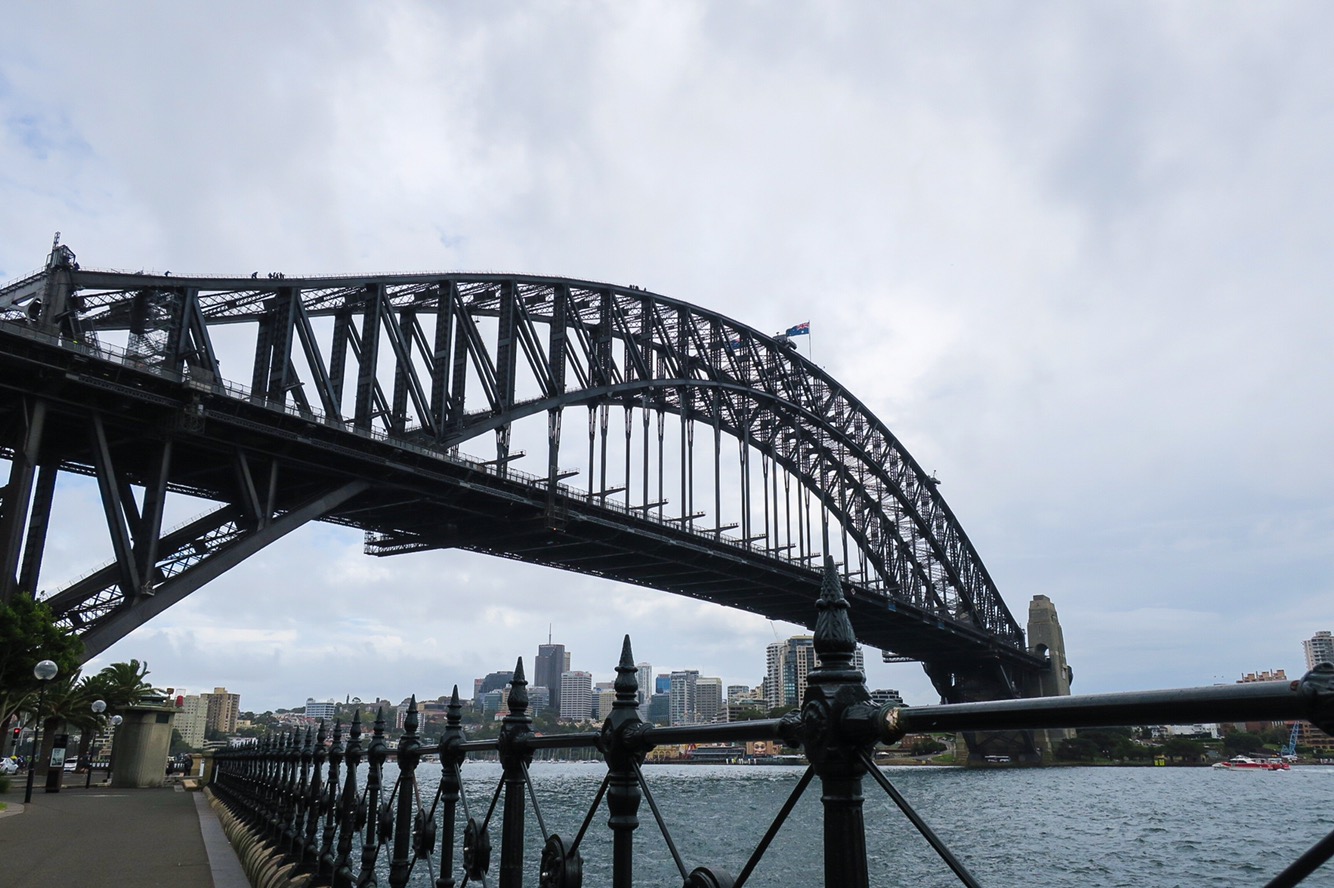First stop, get a good view of the Opera House! It was completely surreal to see it and all of Sydney through our own eyes. It’s something you always see in movies and television, and always see hundreds of photos of. We were in complete awe! Determined to get photos from every angle, we decided to walk up and across the Sydney Harbor Bridge. Plus, then we could say we walked across Sydney Harbor Bridge! Aside from the rain and gloomy weather, the bridge provided incredible views of the harbor. Breathtaking! For the best views – our advice is to get off the train at Circular Quay and walk along the harbor. Then just walk up towards the end of the bridge to get up and walk across!