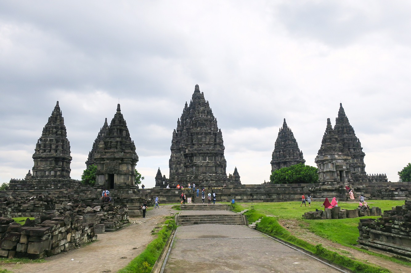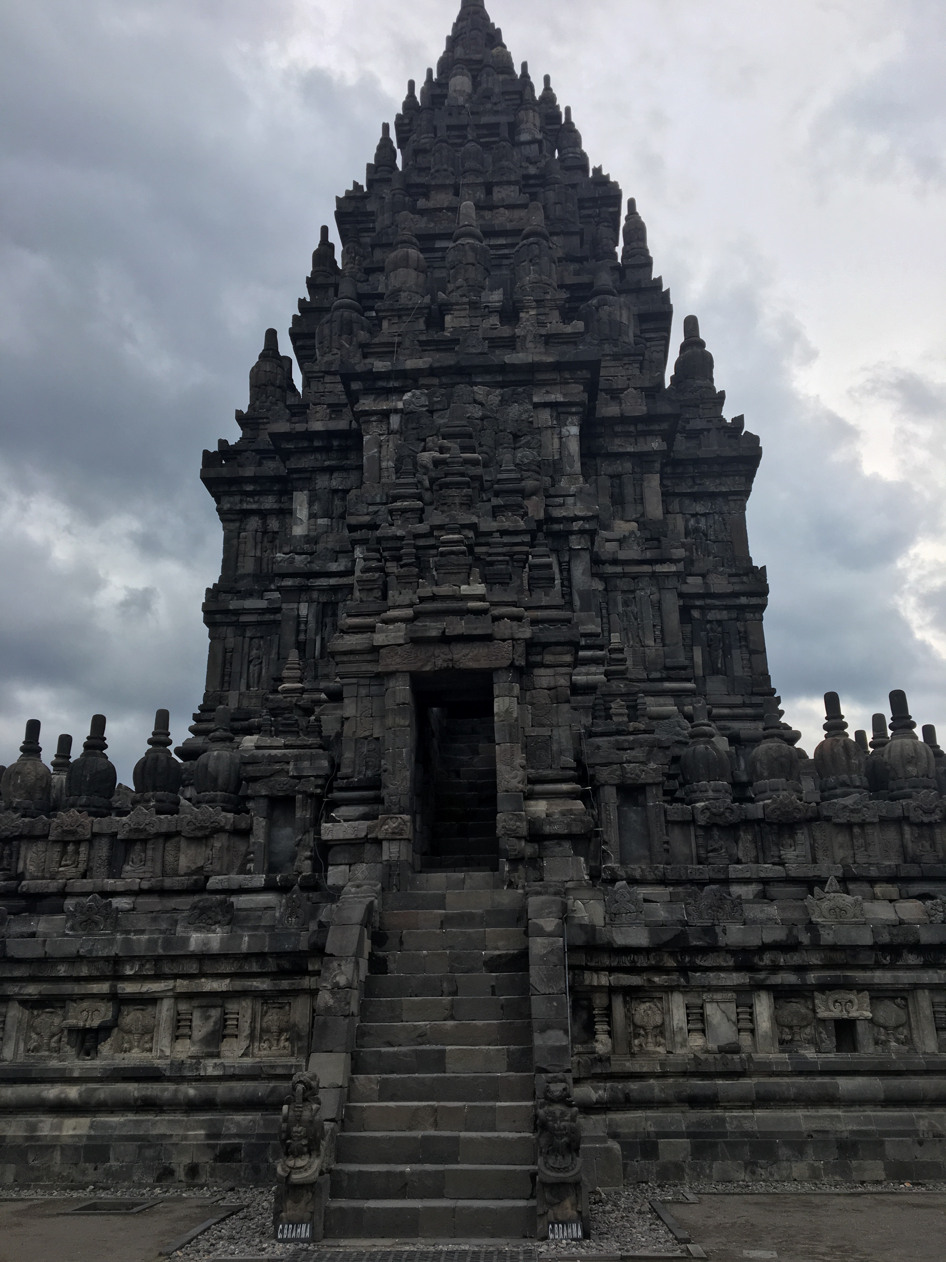 Close to the Prabanan temple site were 3 other temples, Sewu being the most impressive. It was much less crowded here, maybe because dark rain clouds were threatening or because everyone had been templed out for the day, but either way we were happy to not have to dodge so many people. A long, hot day of temple surfing… it was an incredible thing to see in person and we feel lucky to have been able to see them.