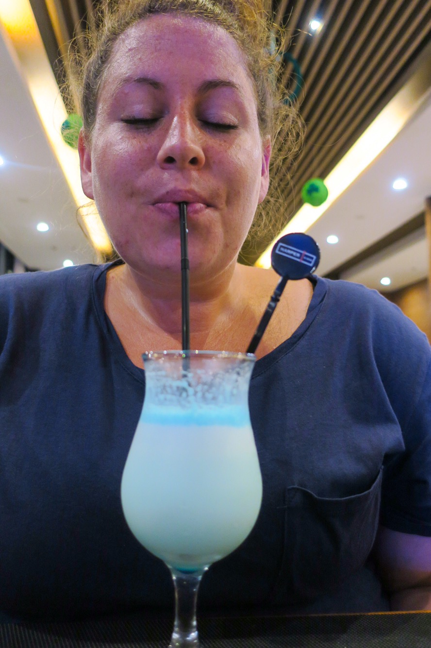 The airport was TINY! The smallest that either of us have ever been in (well, it was a tie for Dean since this was the same size as the “Paris” that Ryanair flies to). The plane touches down on the one and only runway for the entire airport and turns around to get to the gate. The entire airport consists of 1 room… baggage claim. Then you exit to find your ride. It was awesome. Luckily for us, the taxi ride to the hotel was only 70,000 IDR ($5)! Much better than the $25-30USD we have been paying in other cities.