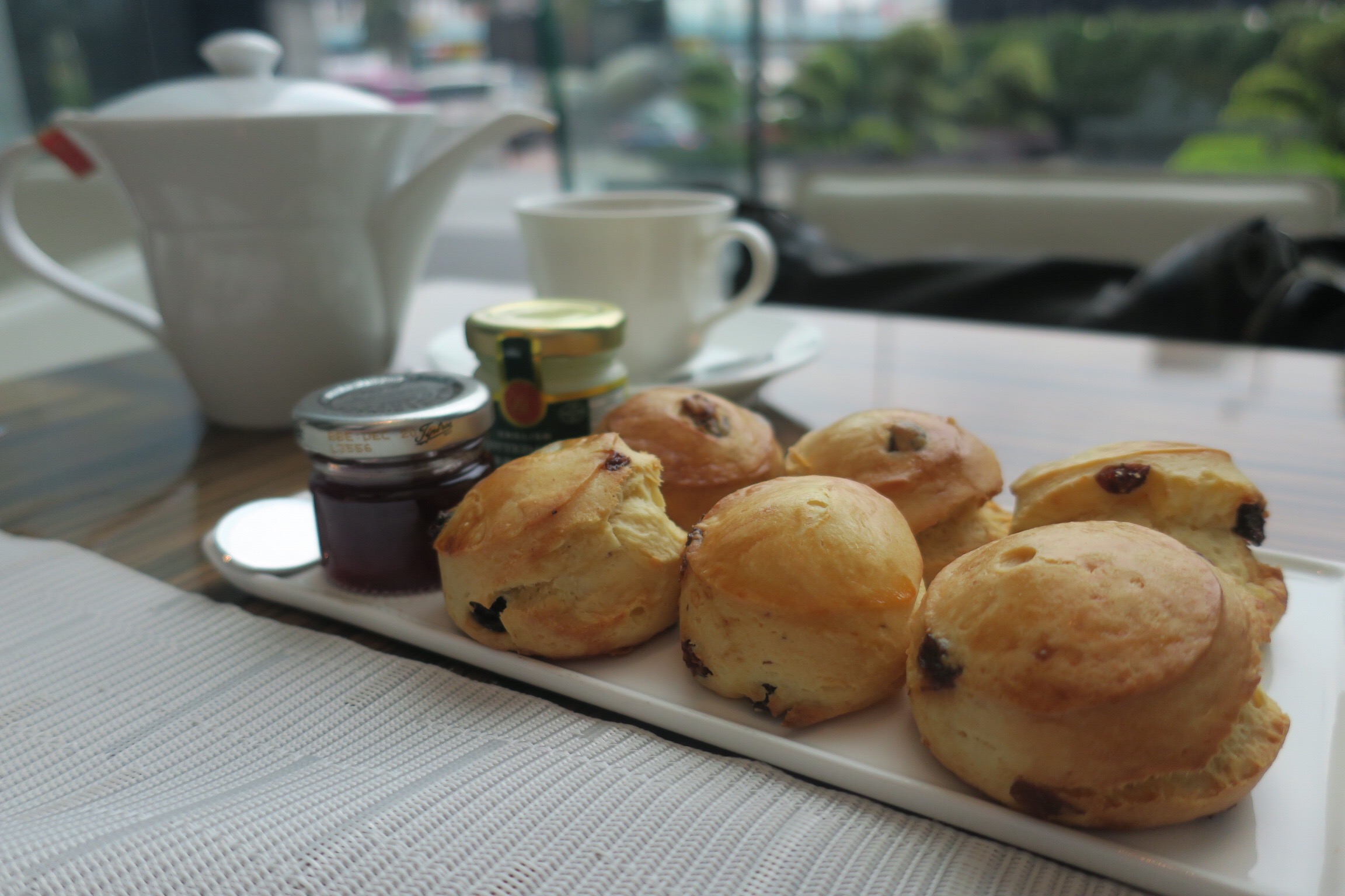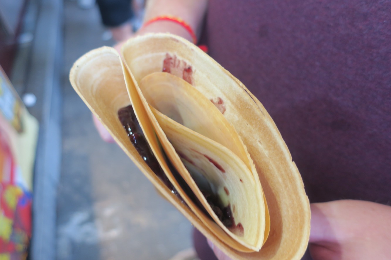 Hotel ICON: Boy was this was a treat. Dean harps on other “travel” people that gloat about their hookups that they get for being famous, and while we are by no means famous, when your good friend wants to show a good time, you take them up on it! This was the restaurant inside the hotel and school that Maceo works at and it had an amazing Tea Set Lunch. First, pick your caffeinated beverage of choice – espresso, cappuccino, or one of about 12 hand selected teas. We were feeling fancy and felt we needed to have tea during the Tea Set Lunch, so I picked the Vanilla Bourbon, it was a hit of smooth vanilla with a subtle hint of smoky, I loved it! Dean wanted to go the traditional Asian route so he chose Jasmine which he described it as hitting you like a flower bomb on the palate but slowly subsiding and smoothing out with a dry tannic finish (wait is this wine or tea?!). Soon after we started enjoying our tea, a plate with freshly made mini scones with raisins dotting them arrived accompanied with clotted cream and strawberry jam. Feeling British yet? It transported us right back to the New Years in London we had a few years ago! The fanciest part was the 3 tiered tray that arrived last. The first and second layer were composed of little hors d’oeuvres. While we couldn’t eat some because of the whole fish allergy thing, we were still able to enjoy the creation and thought behind each bite. You could tell the chef put a lot of time and effort into creating the perfect taste for his customers to enjoy. There was chocolate covered foie gras(duck liver) with crushed peanuts (sounds weird, but trust us… it worked!), lamb and goat cheese on crostini, spicy crab gazpacho, smoked salmon with salmon roe on rye toast, seared scallop with creamed spinach with lumpfish roe, and shrimp with chorizo. The top layer was the best part (at least in my opinion!) little tartlets, each with their own unique flavor and presentation. Green Apple, rose tea chocolate, lavender-citron, strawberry-lychee and jasmine-chocolate. They were absolutely gorgeous and the taste was out of this world.