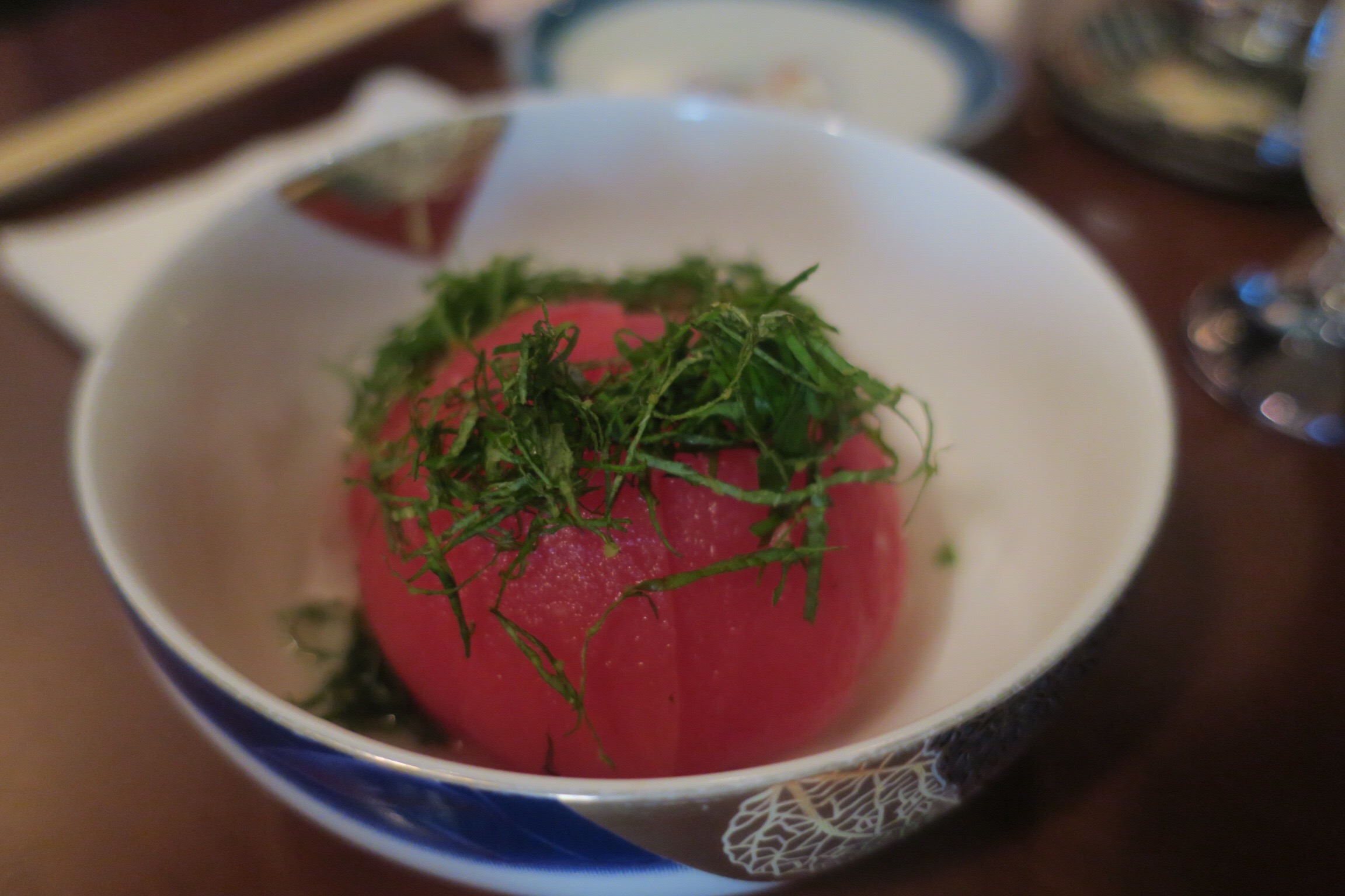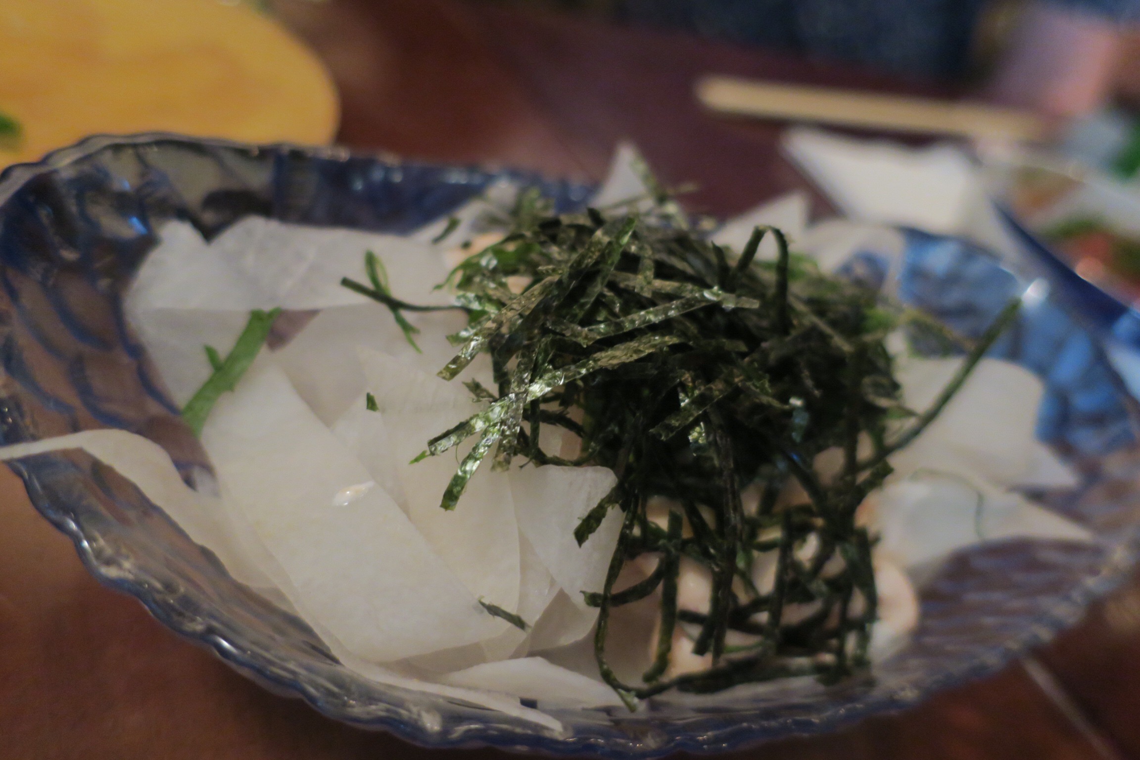 Sake Bar Ginn: Yet another treat by Maceo, we got a chance to go to his girlfriend, Ayuchi’s, Sake Bar right in the heart of the city. This was the kind of place that is just plain authentically good. You can tell Ayuchi is so knowledgeable and passionate about what she does and clearly takes a keen interest in making sure each one of her customers has the best experience possible. She started the Sake culture in Hong Kong, and while many have tried to copy her, none have been able to achieve what she has. We started with a sake that she was sure everyone would like and she hit the nail right on the head. Smooth with just a touch of sweetness but not overwhelming and perfectly floral on the nose. Maceo took the lead and ordered a ton of different small appetizers for us and each one was better than the last. Think Japanese tapas. Perfection! Fried mochi cheese croquettes, fried chicken knees (I couldn’t get over the texture but dean LOVED these. They “popped” in your mouth. That part hit a little too close to home for me with all my knee problems!) spinach marinated in sesame sauce, shaved lotus root with shisho leaves, carrot and mushroom salad, burdock root fries (similar to parsnip), fried chicken lollipops with spicy cod roe mayonnaise, silken tofu marinated in soy sauce, topped with ginger and green onion, ribboned daikon salad, chilled Japanese sweet tomato steeped in sake sauce topped with shisho leaves and sous vide seared beef tongue with Japanese pepper. Sounds like a lot of food, but the 3 of us managed to get it all down! We then tried a sparkling style of sake which was a first for Dean and I. It had a touch of sweetness and went down way to easy. The night finished off with friend of Maceo’s joining us and sharing yet another round of drinks. Such a great night with delicious food and even better company!