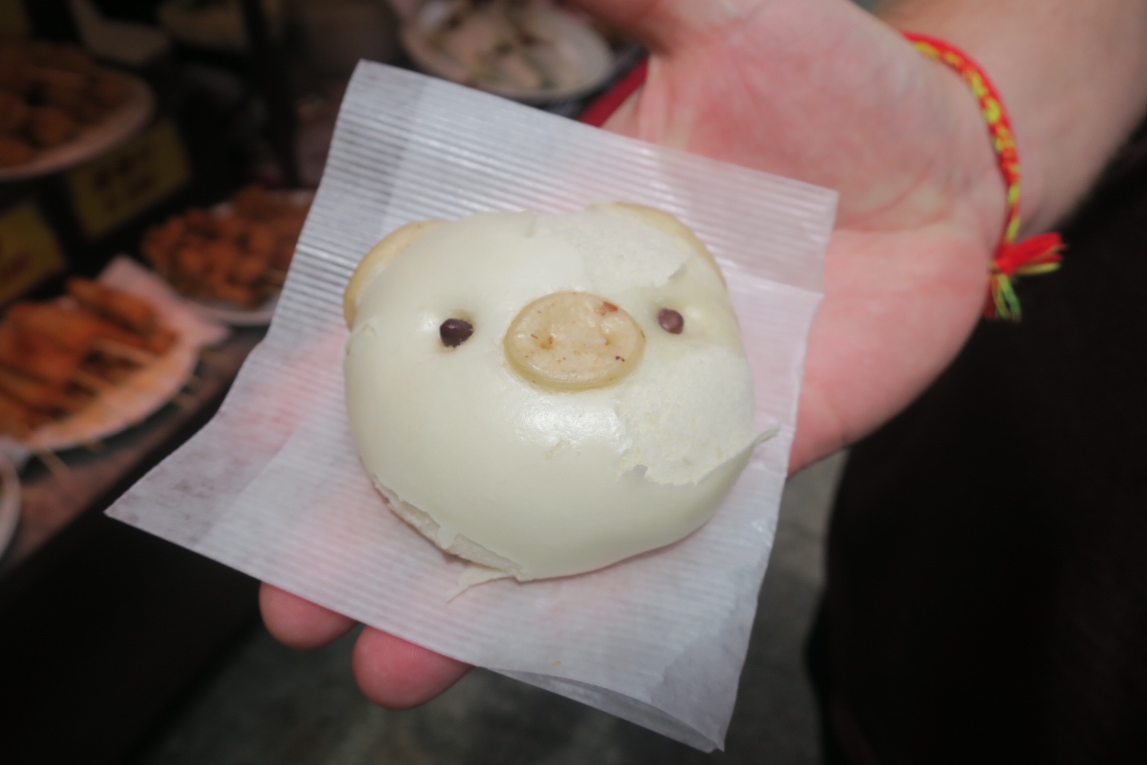 We expected Kobe to be filled with bright green pastures filled with happy cows being fed beer and having day long massages, but what we got was a city… just like any other. Although it did have the smell of grilled meat running through the streets. We had heard that if you want to get some of that delicious, famous meat without the large price tag that Chinatown was the place to go. Luckily it was close to the metro station we got off at and we were there within minutes. It was filled with vendors selling all different kinds of street foods, many choices of the famous beef, and so many of the delicious Chinese specialities that we’ve come to love, like Bao, but these steam buns were in the shape of animals! We had to get a few to taste! The cute Pig was filled with juicy BBQ pork with sweet adzuki beans for its eyes. The chick bun was sadly not filled with chicken, but still had a delicious creamy egg custard filling it.