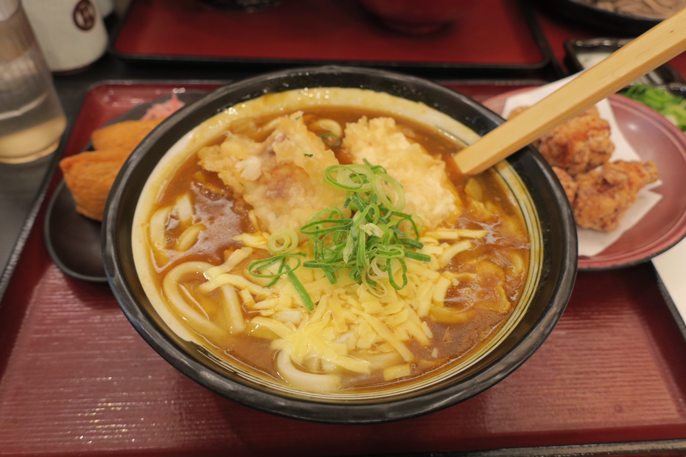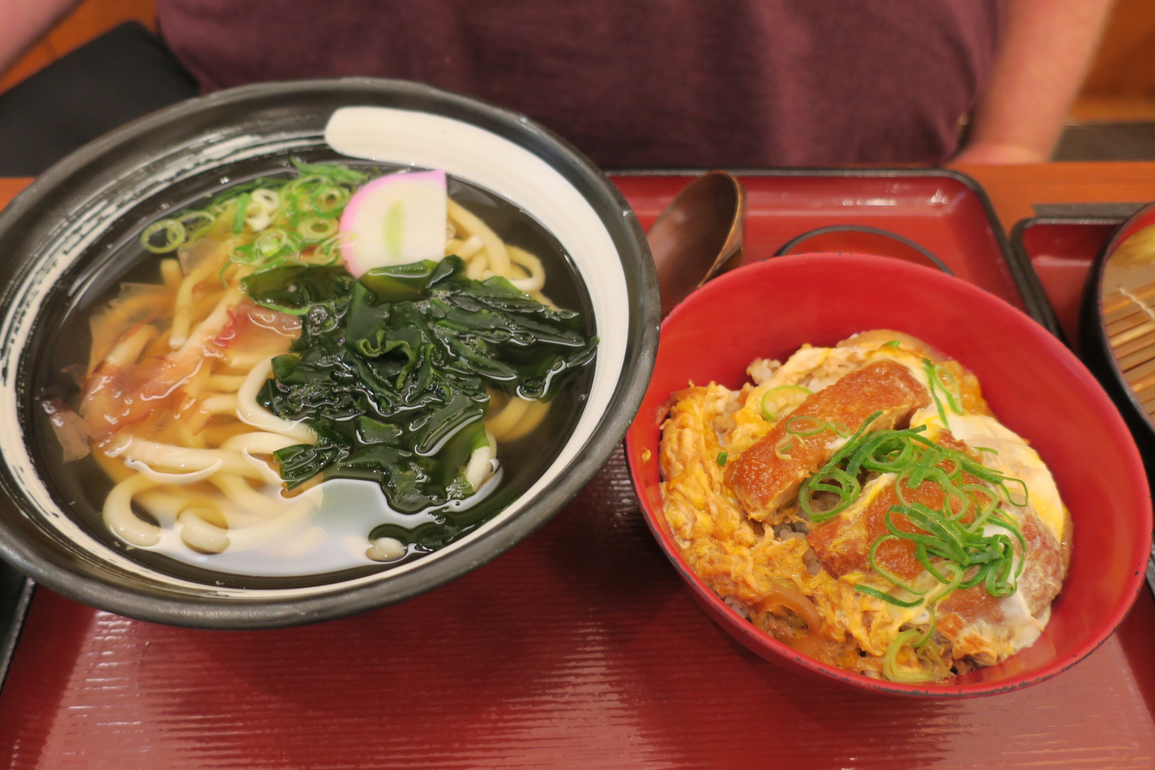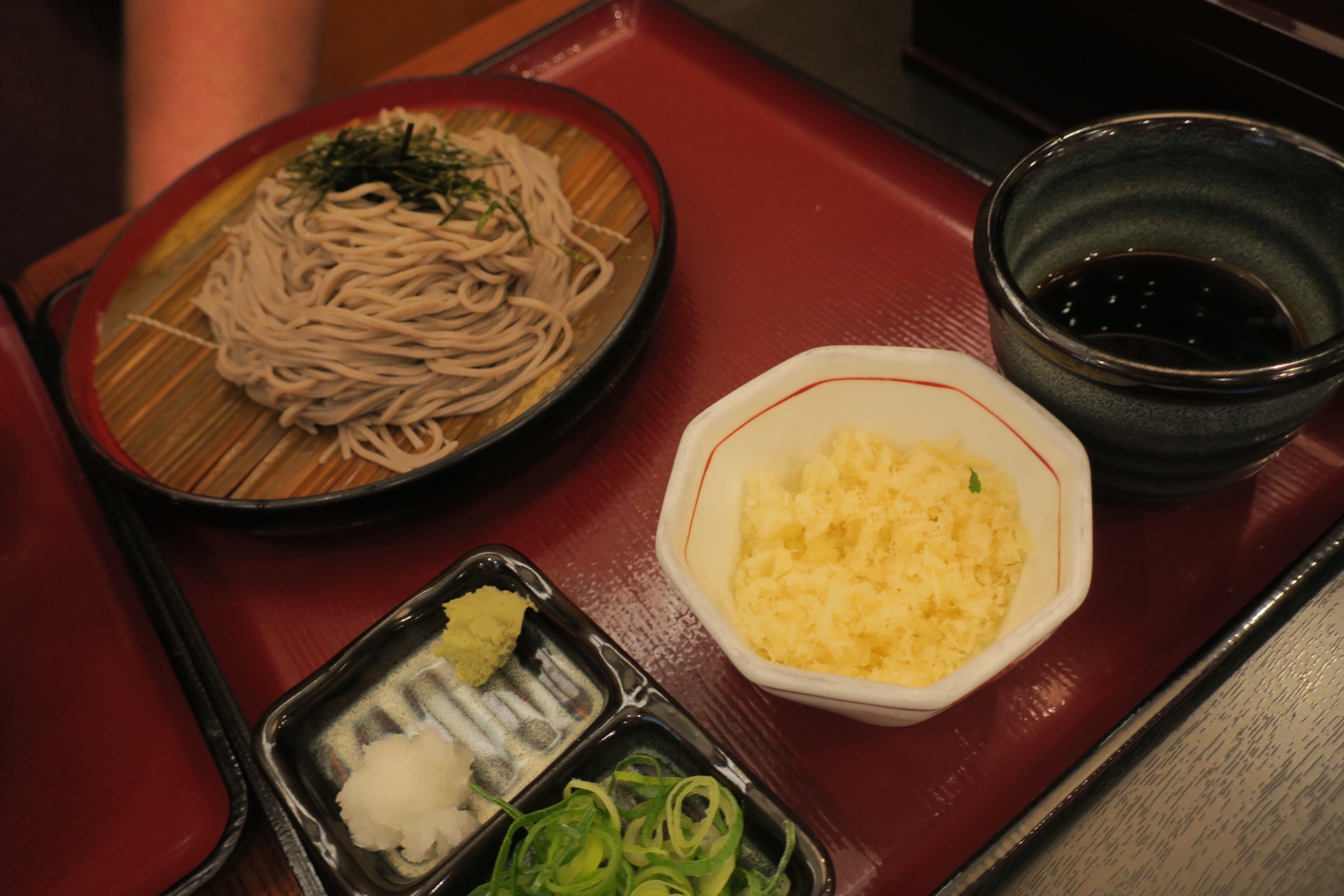 The next time we came to this dining area, we chose a place with delicious looking Udon noodle soups. I got one made with curry broth and udon noodles. Not the thick curry like CoCo Curry, it seemed to be mixed with broth. It was topped with tempura fried cheese and a side of chicken. Perfect! Dean had some Japan bucket list foods that he got to check off here, obviously Udon noodles, but upon closer inspection of the Japanese menu, he saw soba noodles offered as well. The classic Japanese buckwheat noodle with a flavor that can only be described as a bit nutty, then dipped in a light soy sauce, topped with some wasabi and the crunchies of fried tempura batter made it amazing! Oh, and he loved his udon noodles too!
