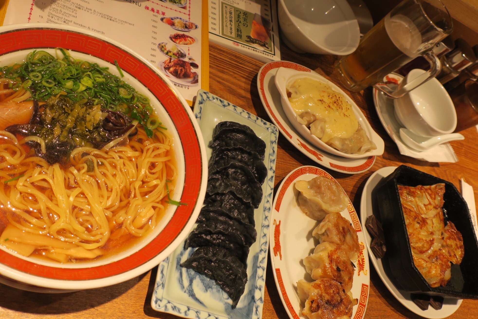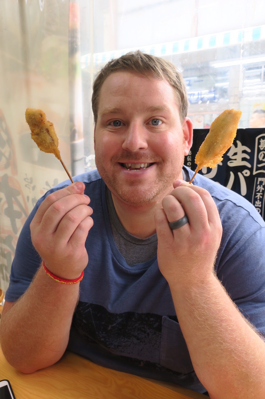 Tiger Gyoza: After a long exhaustive search for “what to eat tonight” we decided on Tiger Gyoza in Kyoto on our final night there. Sure, not really Japanese but still amazing, and the 20 minute wait at the door must’ve been a good sign! A gyoza is a little dumpling, like a ravioli or pierogi, they are usually steamed then either pan fried or served simply steamed. We picked a few, knowing they’d mostly be pork, (heaven for Dean!) Fried pork dumplings with greens, “JAM-JAM” pork pan-fried dumplings, pan-fried beef and pork black dumplings and finally something for me, cheese grilled dumplings! Or so I thought… Dean loved his, tender wrappers hugging perfectly seasoned pork, or beef with different textures! I was really excited for the cheese dumplings, until we saw it being brought to us. A massive amount of cheese sauce being poured on top of steamed PORK dumplings! More gyoza for Dean, I had some ramen noodles, easier to pick out the pork in that. Still a great meal overall.