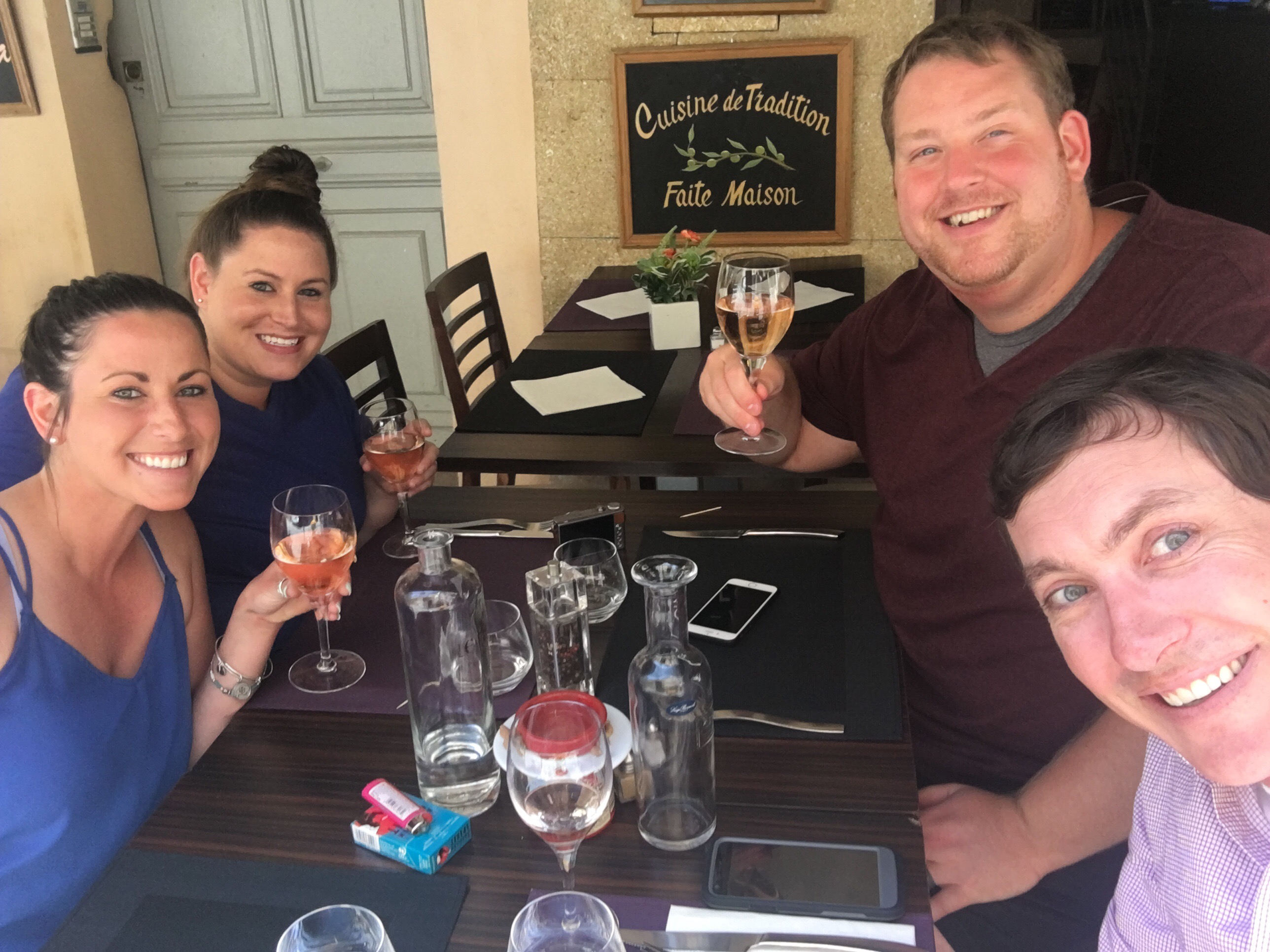 Steph and Sean were visiting his family in Lauris, a town about 30 minutes away from Aix en Provence. Aix, for short, is a fabulous city. Big enough to have tons of shops and restaurants but small enough to walk the whole thing. The downtown area is filled with little alleys that wind in and around. Each corner opening up to a new courtyard with fountains and cafes. It gives the true Provincial charm. Since we were there on a Tuesday, there was a market going on that lined the Main Street. Clothes, jewelry, fruits & veggies, blankets, handmade plates and bowls, the list goes on and on. The 4 of us strolled the street for hours catching up and reveled in the fact that we were spending time together in France. A delicious and relaxing lunch after shopping topped the day and we were back to drop them back off in Lauris. Fortunately they were able to show us around their town a bit before they had to get back to Sean’s family. The town of Lauris is built on the side of a mountain and the charm is off the charts. Such a gorgeous little town that shows off its beauty around every turn. The perfect end to a great day with friends.