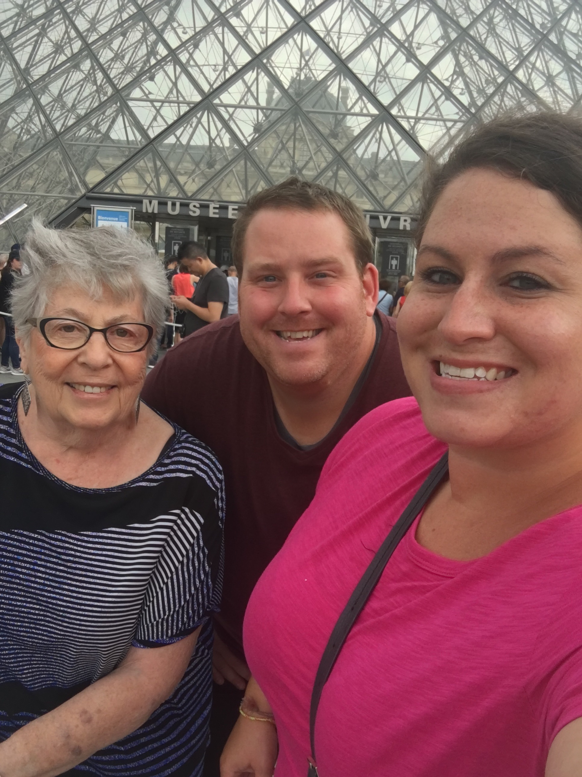 We spent a day at the Louvre, a first for all of us. There’s absolutely no way one can see the whole thing in a day. We walked in and around as many exhibits as we could, soaking up as much art as our minds could comprehend. We, of course, had to see the Mona Lisa. Crowds and crowds surrounded it, each person hoping to get as close to the front of the barricades that surround it. We realized very quickly that there was no way I was going to be able to push Bubby in the wheelchair we rented for her all the way to the front. (Another good tip! There’s an accessibility office inside the Louvre, all it takes is a trade of your ID to rent a wheelchair for as long as you’d like. Considering how huge the Louvre is and how long it takes to enjoy, it’s a great option if you or your family member can’t stand or walk for long periods of time!) Dean popped up to the front and asked one of the security guards if we could wheel her towards the front so she could see. To our surprise he said “Of course! Bring her here!” Not only did he allow us to go to the front of the crowd, but he insisted that we wheel right in front of the painting! In front of all the people and the ropes keeping them all 8-10 feet back. A true once in a lifetime experience! We were able to view it with zero obstruction just a few inches away. It was amazing! The Louvre is an amazing place, the building itself is so grand with frescos and exhibits from around the world, worth a visit for sure. Outside there are the glass pyramids designed by I.M Pei and Arc de Triumph du Carrousel and the Jardin des Tuileries with a view of Concorde up to the Famous Arc de Triumph…does it get much more Parisian than that? More tips for the Louvre: While buying tickets ahead of time is great because it allows you to “skip the line”, we found out that it actually costs €2/person more to do that. It’s cheaper to buy there! Also, we rented audio guides which we felt were a total waste. Don’t spend your money! They were difficult to use and when we did figure it out for a handful of the exhibits, they didn’t provide that much information. If you rent a wheelchair though, an audio guide is free for that person +1! Why isn’t there just an app for that?