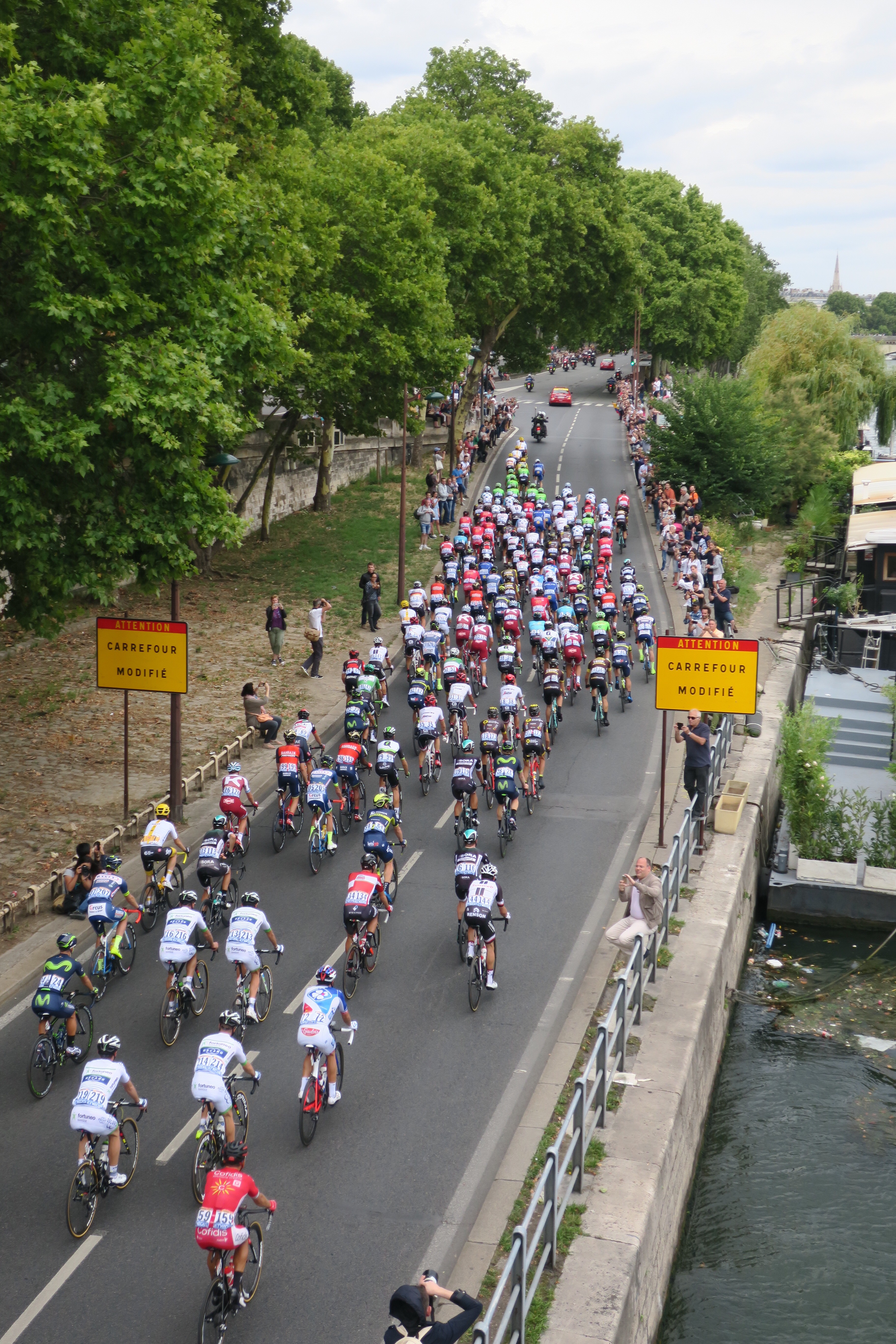 Since the Tour De France was ending during our time here and we found ourselves with some time on its final day, we ran down to the Bir Hikim metro stop to see if we could catch the bikers as they made their way into Paris. Dean turned to me and said “I kinda wanna go see it, but we should go right now if we’re gonna go”. We threw on our shoes and got to the lookout point just in time not only to see the bikers make their way into the city, but to see some more planes fly over and drop their colorful french flag smoke! This time right next to the Eiffel Tower. How’s that for a sight?!