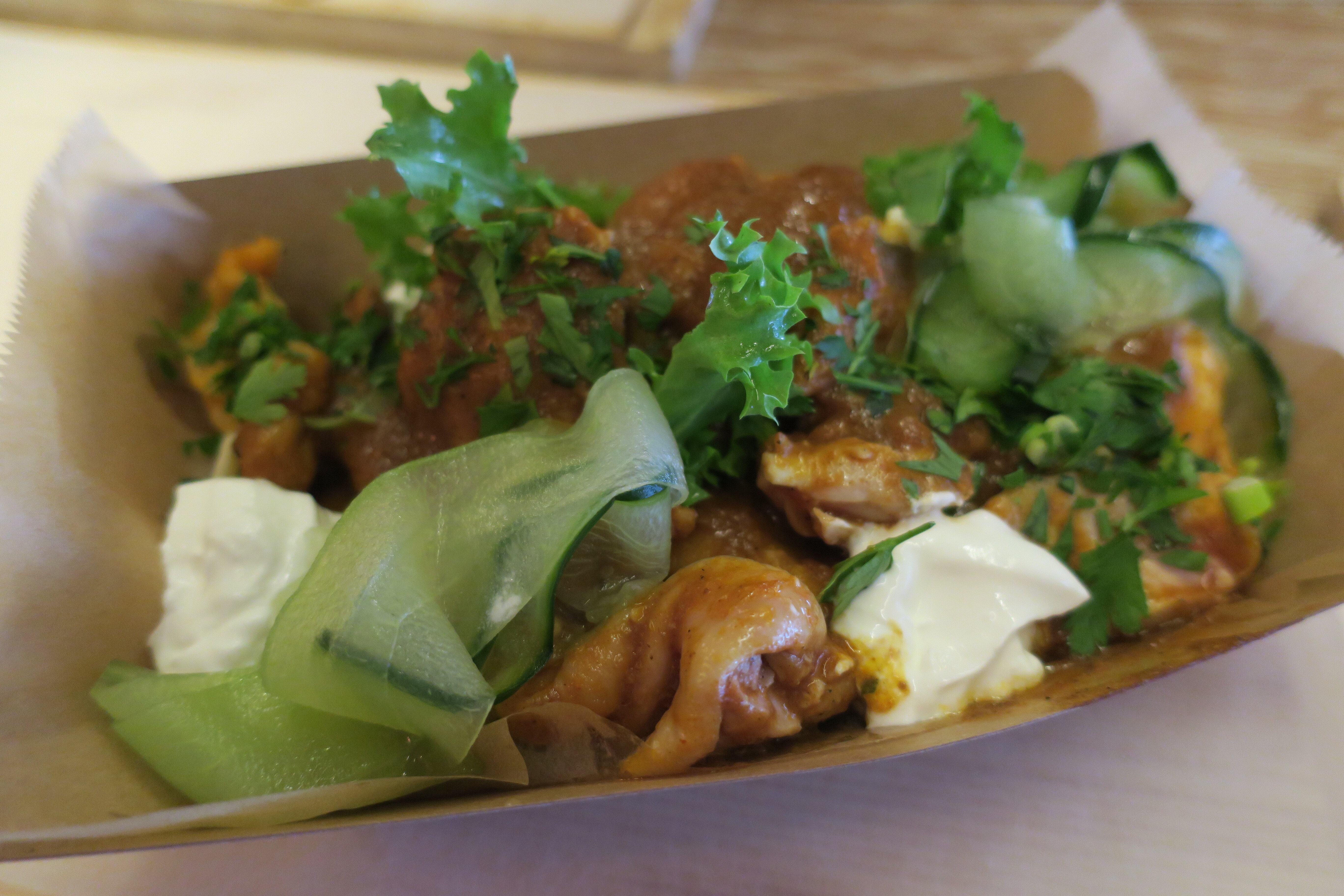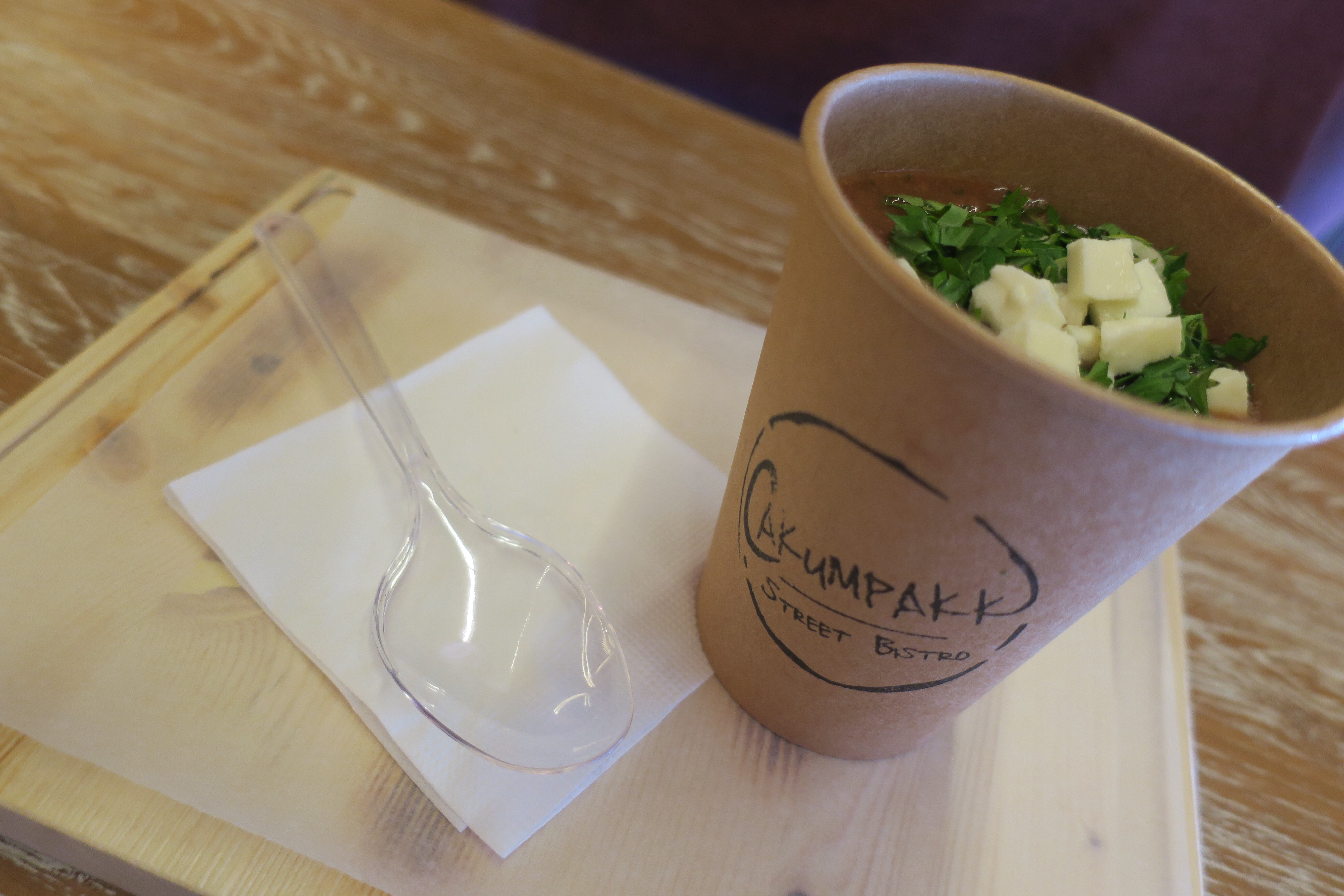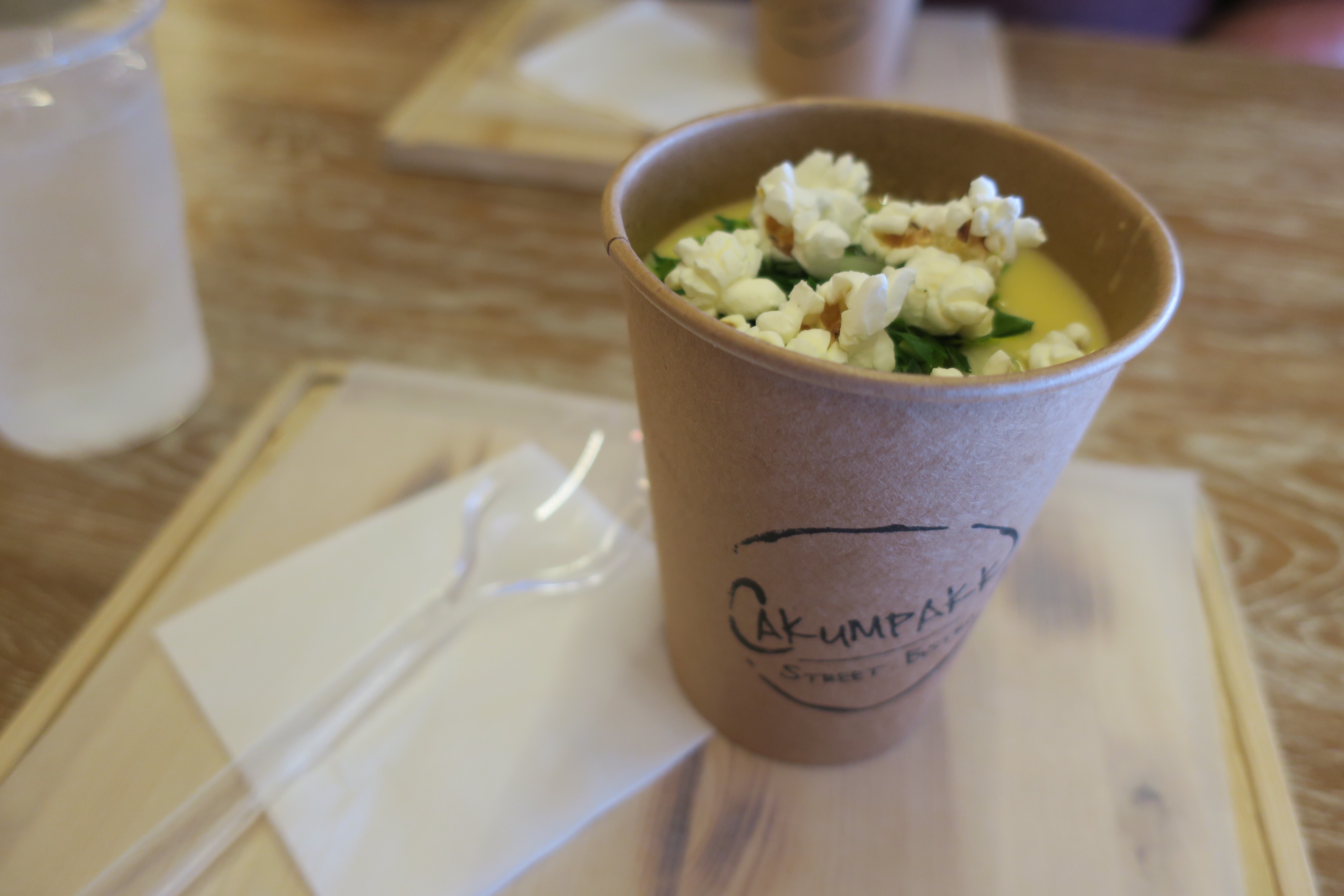 Cakumpakk: Hungary is big on soups, that is very clear! Hot or cold, any time of day. Our meal at Cakumpakk was no different. To start, we got their gazpacho, goulash (because yes, you have to try it at every opportunity!) and a cold creamy corn soup topped with cinnamon tossed popcorn and parsley. Both were insanely delicious! I wasn’t sure how I’d feel about a cold corn soup with popcorn but it was amazing! Super refreshing since it was so warm out and the texture was creamy with hints of crunch from the popcorn. The cinnamon took it to a whole new level! Definitely one we’ll have to recreate at home. The goulash here was much thicker! Almost like they puréed all the vegetables together for the broth and added the beef in at the end. Much different than the one we had the night before but tasty in its own way. The gazpacho was just like any other, a nice refreshing taste of Hungarian tomatoes on a hot summer day. After our soups we shared Chicken Paprikash, the national dish of Hungary! Traditionally it is pieces of chicken in a creamy paprika sauce served with sour cream over a bed of small dumplings. Each restaurant seems to have its own spin! Here, the sauce was less creamy but had huge dollops of sour cream and was served over big “smoked” flour dumplings. Very filling! We were happy to share for sure.