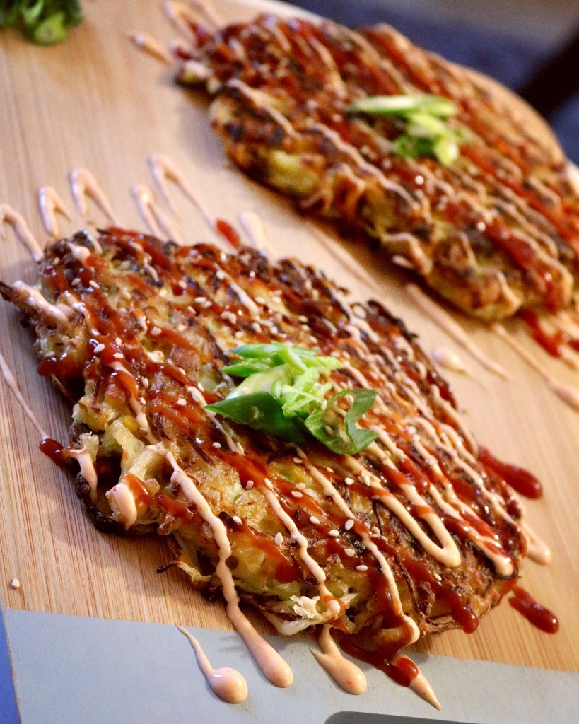 Before our world tour, Dean was an Executive Chef for the University of Colorado in Boulder, a college with a very diverse student population, which meant that putting out a diverse menu was easy to do without many complaints. Each year there was a massive catering event that was made to showcase the diversity of the student population that he and his staff prepared all of the food for. There would be up to 35 different countries and Japan, of course, was one that was always represented. One year, the recipe for okonomiyaki came across his desk, and to be honest, it sounded weird! Shredded cabbage, eggs, flour, carrots, soy sauce, you get the picture. How could all of these ingredients together make a cohesive dish? Needless to say, they were a hit! Crispy cabbage got nestled in a warm batter that held it all together, and the best part, the sauces you put on top!