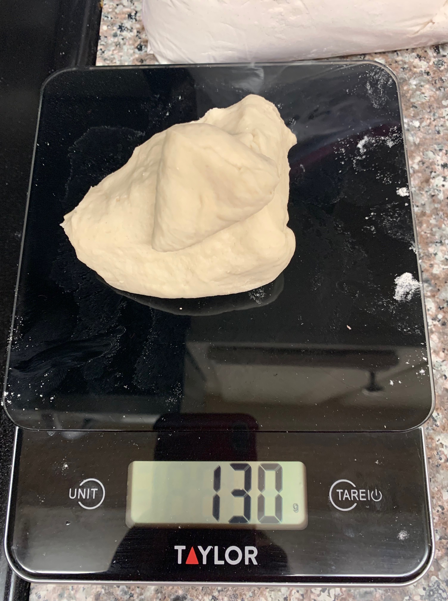 After the dough has formed, we like to weigh it out to see how much the total is, that way you can cut to get even sized bagels. You don’t need to do this step and be as precise, but you do want consistency when baking, so try to keep them close in size.