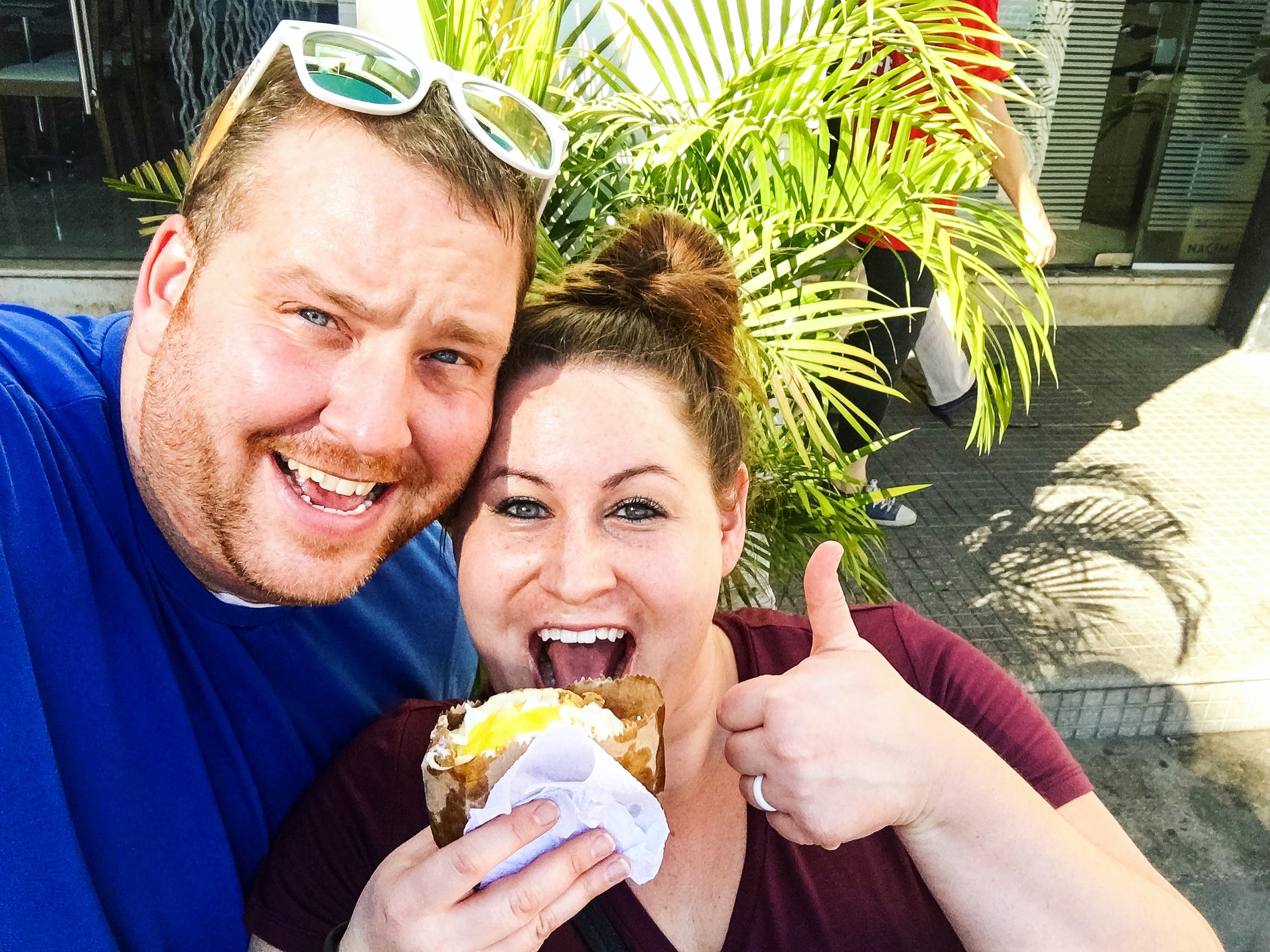 First, let us start by saying that we have a certain love with Colombia which is where we first tried Arepas. Julie’s bestie is from Bogota which helps, but we’ve been to Colombia twice and had some great times there. It’s a country with pretty much anything you could want, amazing beaches, breathtaking mountain scapes, jungles, the Amazon rainforest, huge modern bustling cities, small villages with people selling their wares roadside, the list goes on. We think it also holds a special place in our hearts because it was where we started our world tour off. Flying from cold Boston to the tropical lushness, beaches and history of Cartagena brings a certain euphoria that’s hard to beat. Imagine walking around in a centuries old city surrounded by walls that predate the country you’re from, the people are vibrant, not only in spirit, but also in dress and attitude. This was where we had our first arepa, from a lowly street cart in the center of the old walled city. A warm, griddled corn cake, stuffed with butter, cheese and the most yellow pineapple sauce you will ever see.