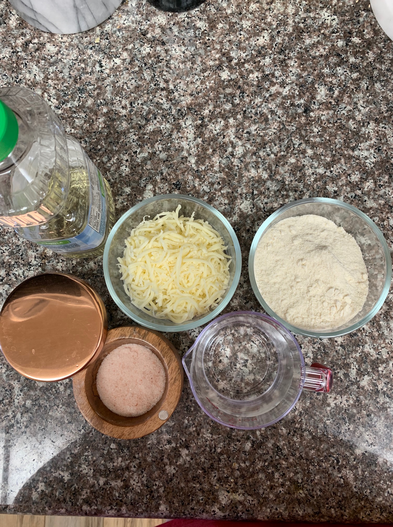 In a bowl, combine the water, corn meal, sea salt and grated cheese. Don’t be afraid, get your hands dirty and use them to mix it all together! After you get a nice thoroughly mixed dough, let it sit for 5 minutes, this will let the dough hydrate.