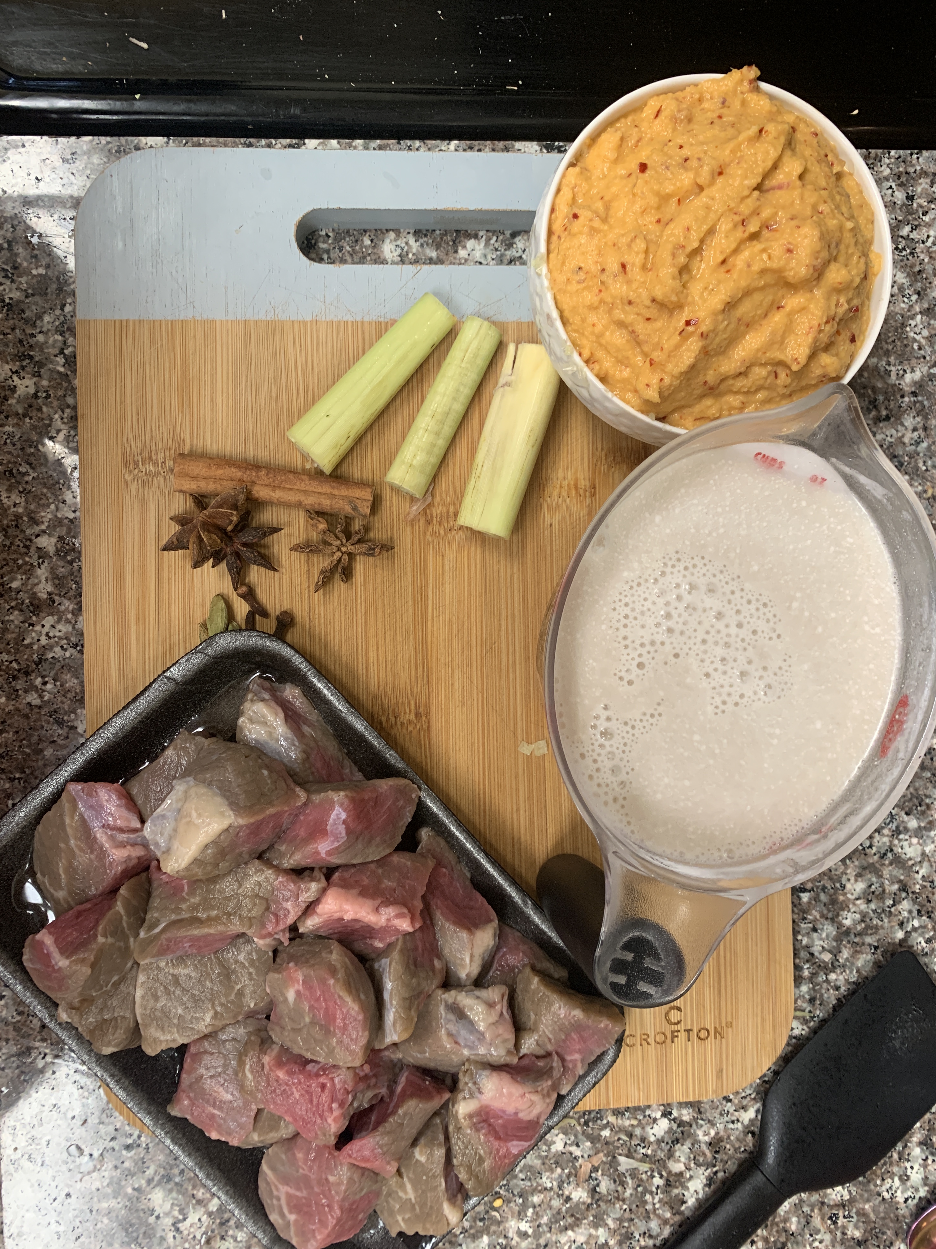 If you’ve travelled through Southeast Asia (SEA for short) or love the flavors from thai/malaysian/indonesian foods, we think you will really enjoy this recipe! Many of the base flavors are the same as the curries you have in Thai foods…lemongrass, ginger, galangal (ginger’s cousin) and coconut but there are some new spices introduced in this dish too that are a little different. These include, cinnamon, clove, star anise and cardamom. These are all great spices that add some nice rounded warmth to the dish.